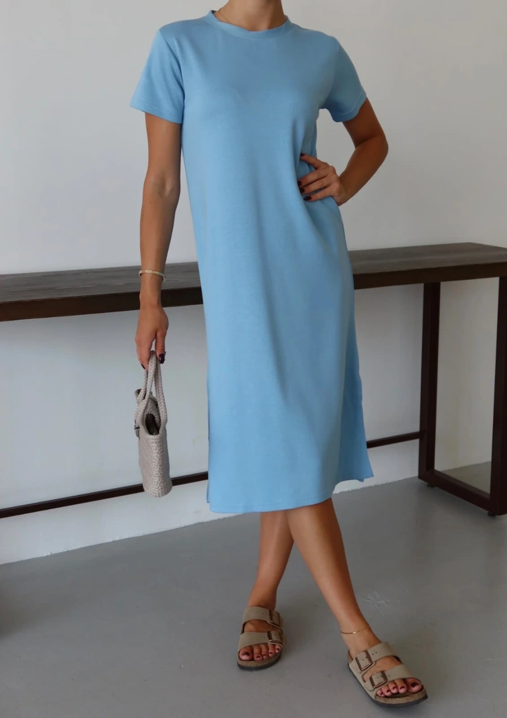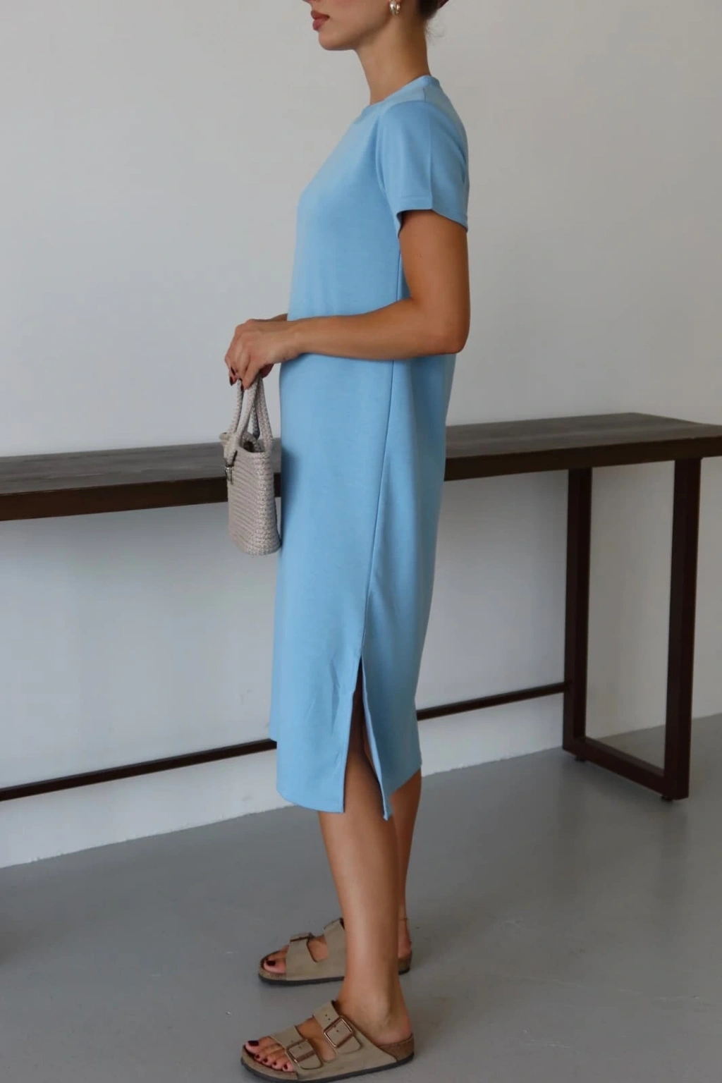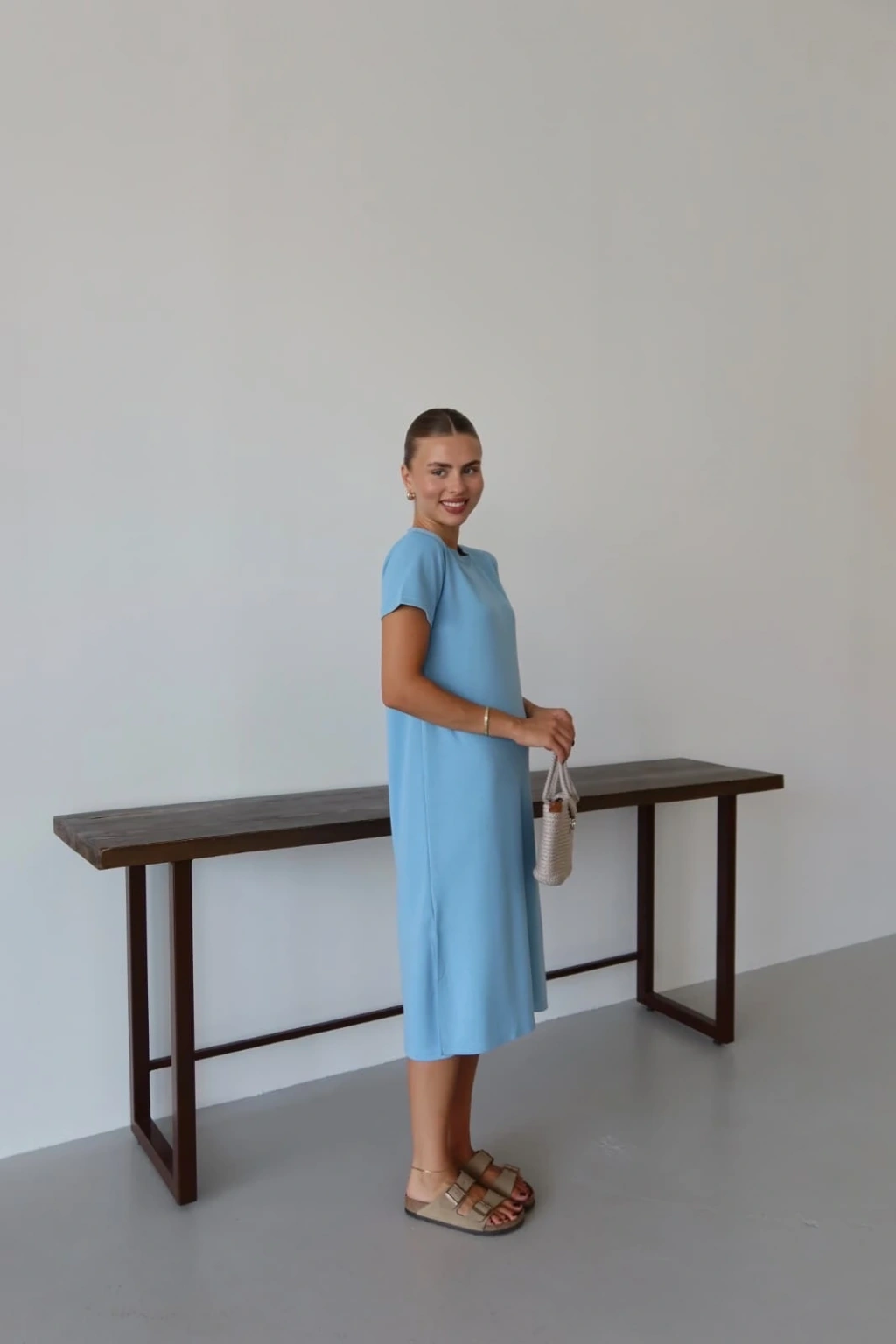 Kuşaklı mdl esnek kumaşlı elbise bej pt