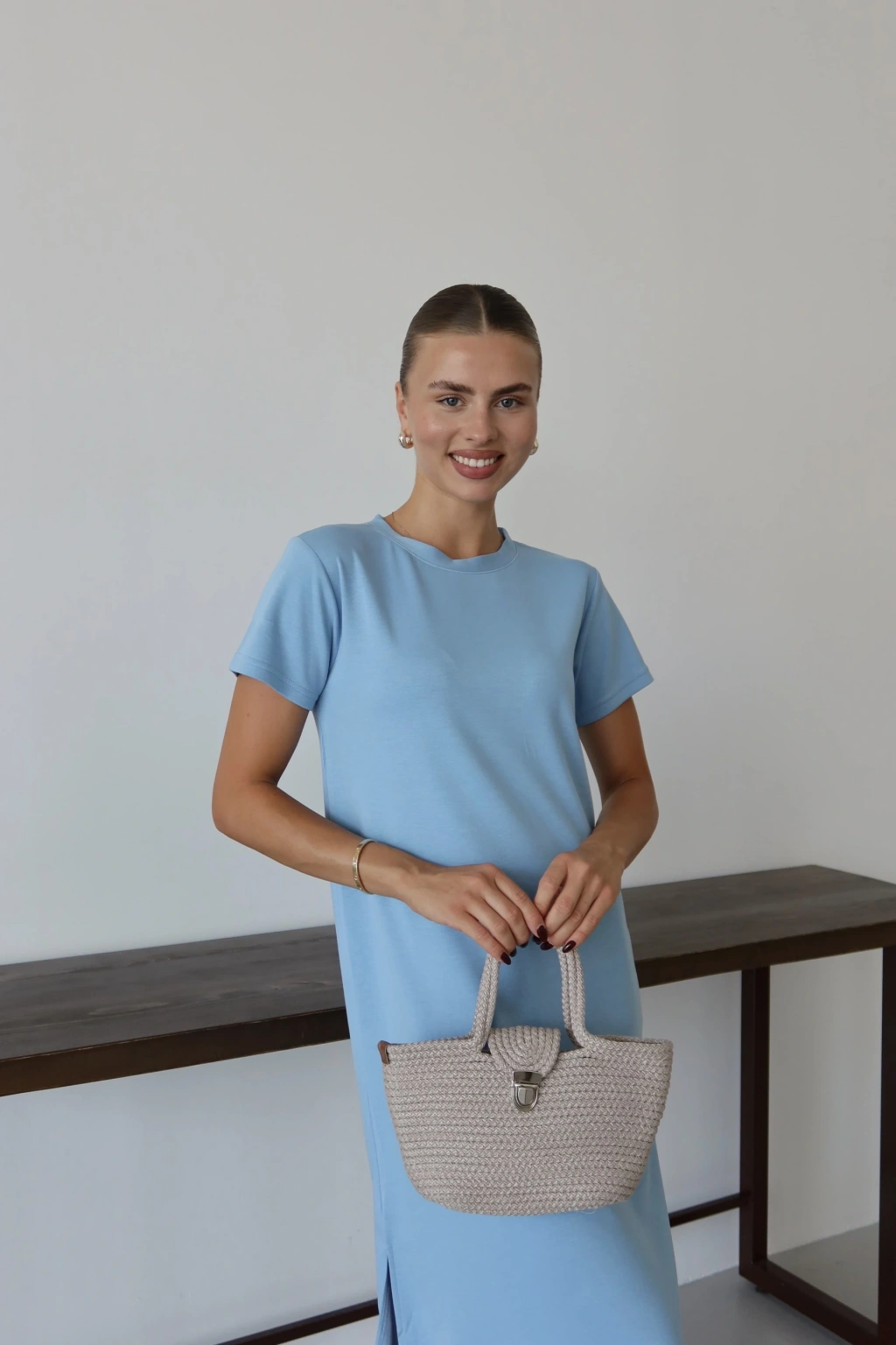 Askılı ch kumaş düğmeli elbise gribeyaz h265007