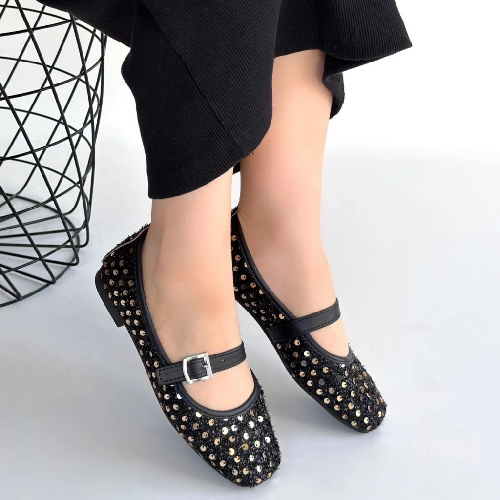 Zaty Siyah Süet Siyah Pullu Babet Ayakkabı