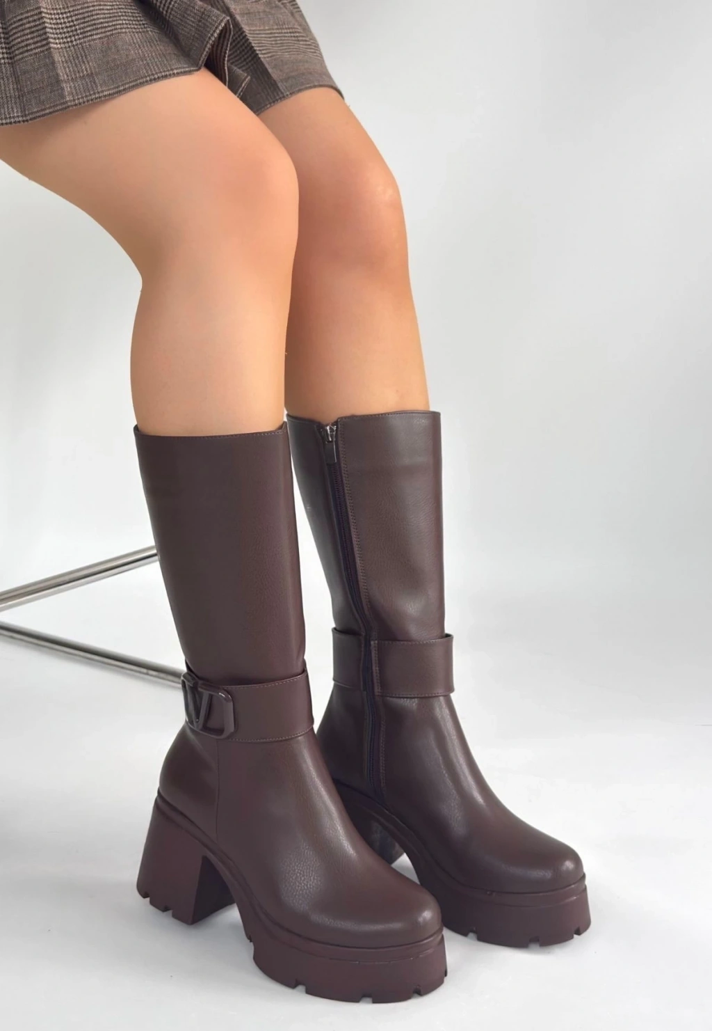 Roksa Acı Kahvei Cilt Topuklu Çizme