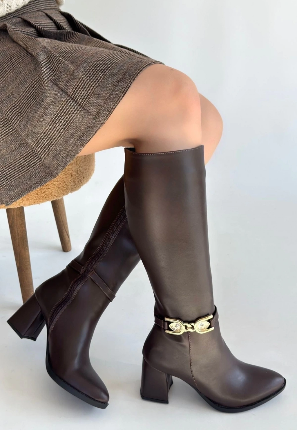 Zelya Kahverengi Cilt Topuklu Çizme
