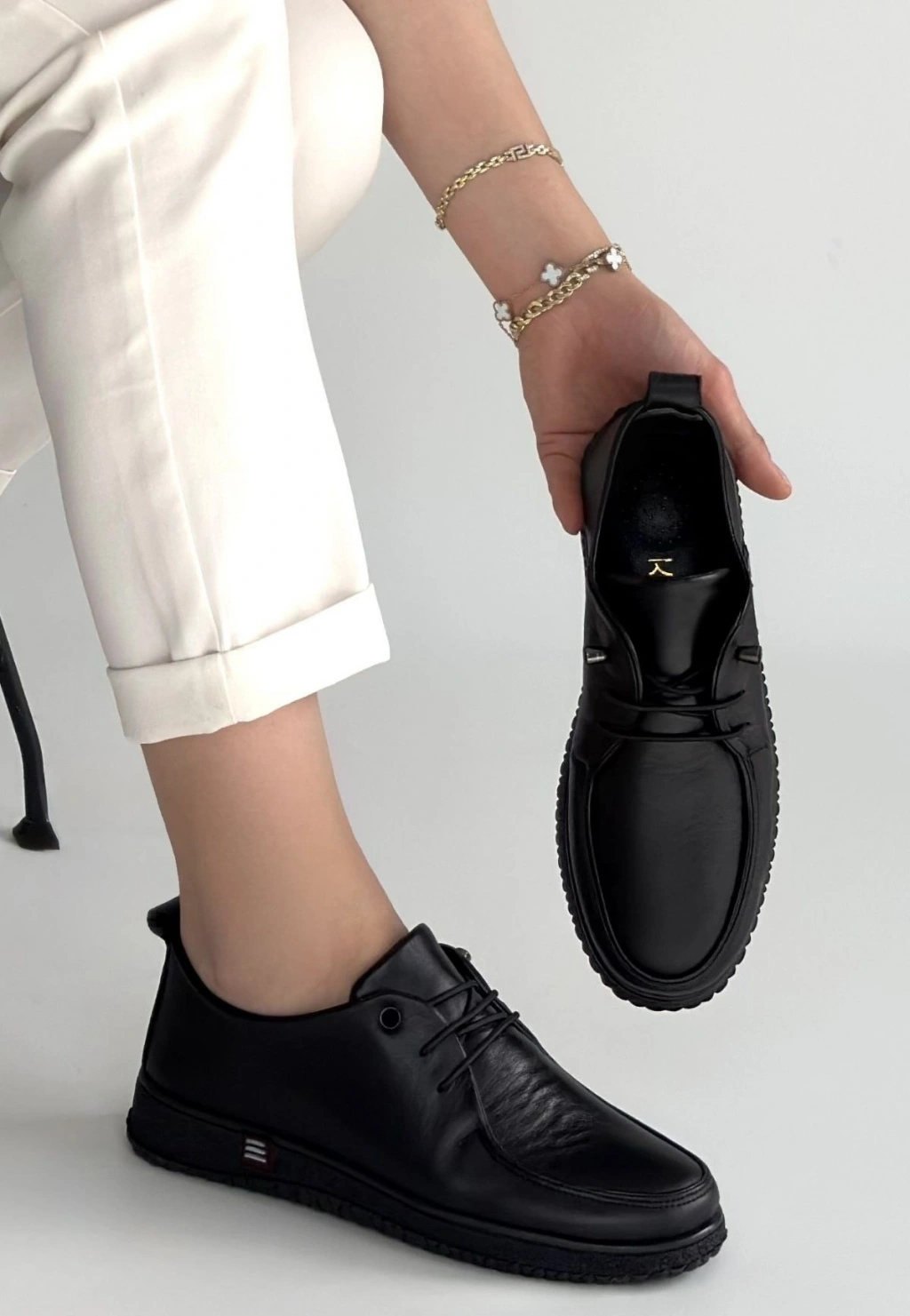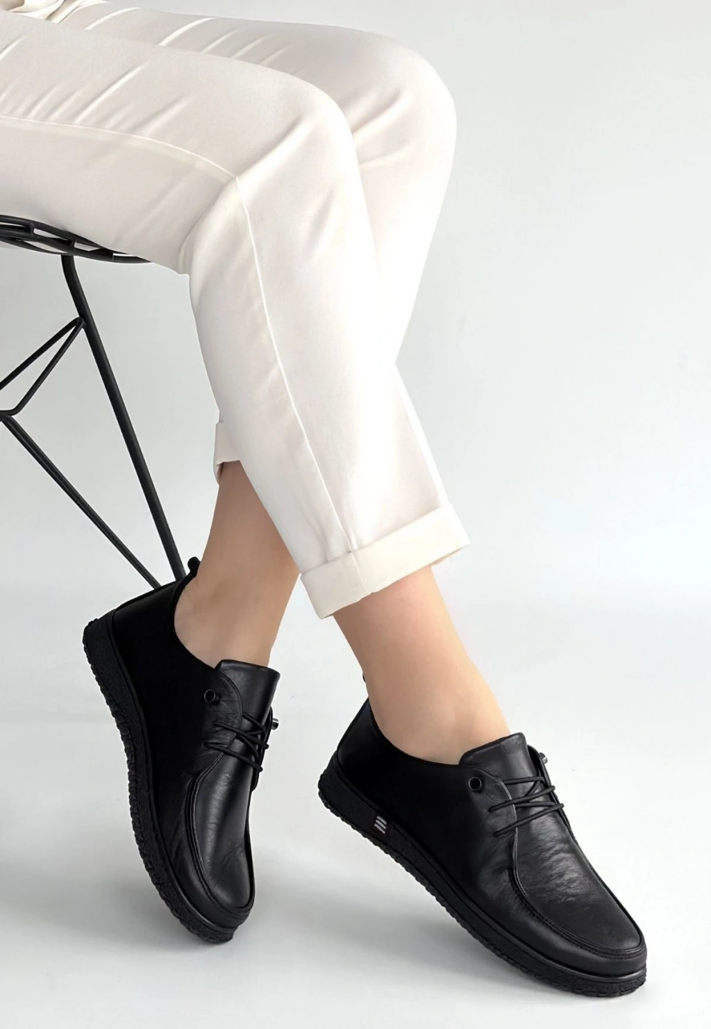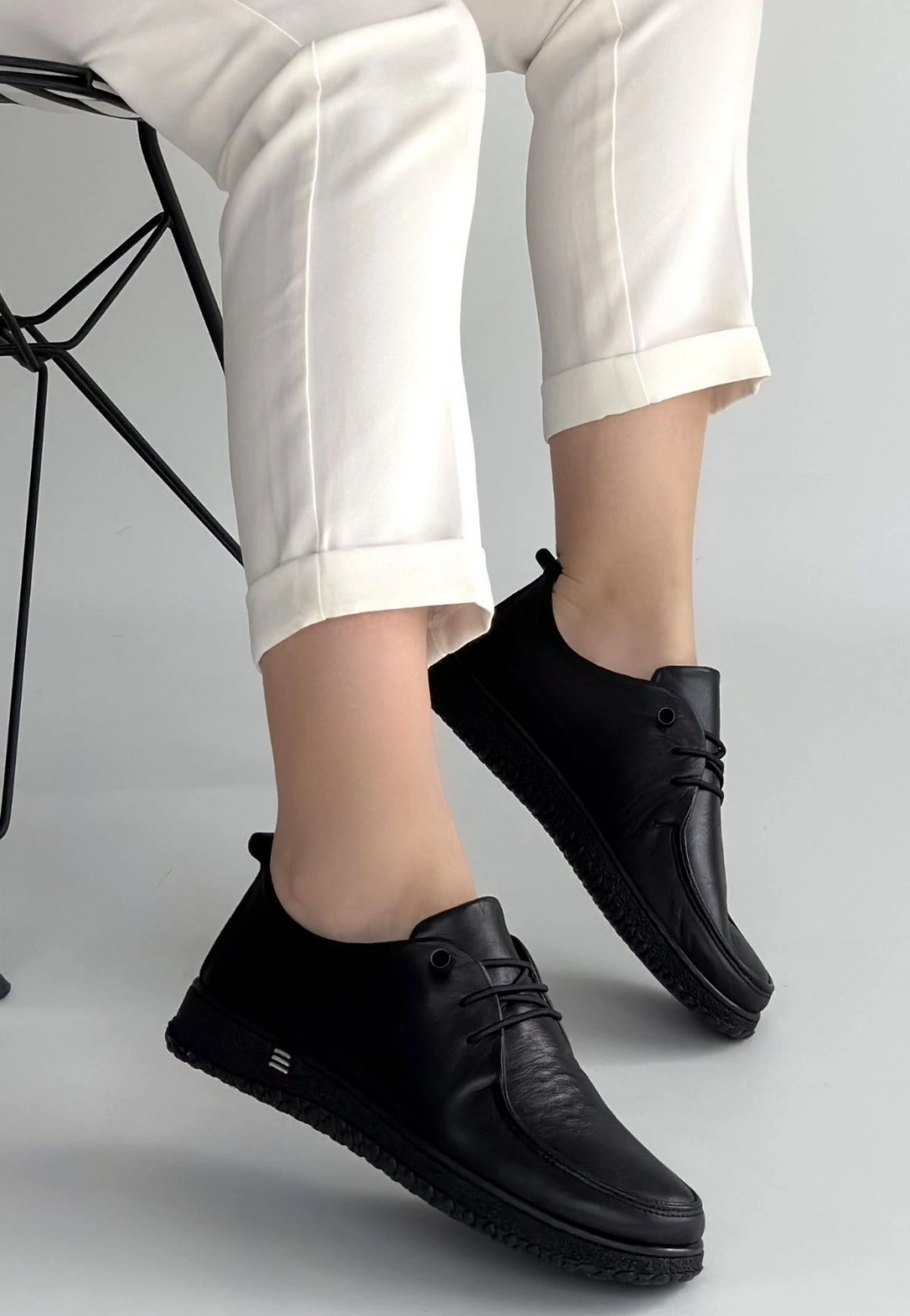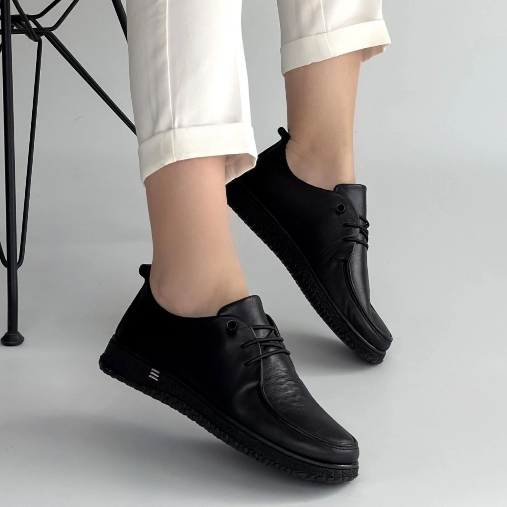 Mopin Siyah Deri Bağcıklı Spor Ayakkabı