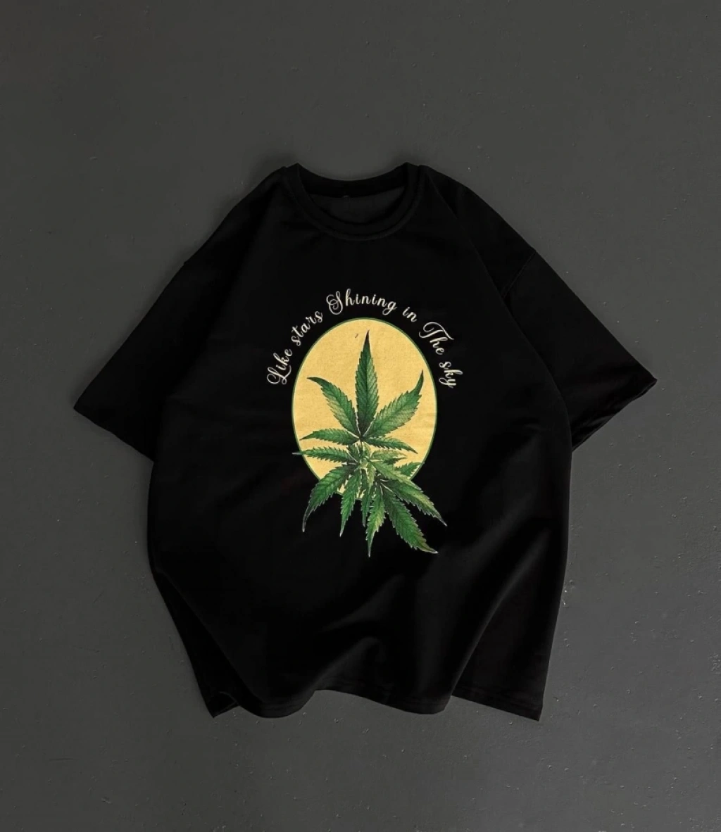 Ön Ve Arka Baskılı Oversize Bisiklet Yaka T-shirt- Siyah