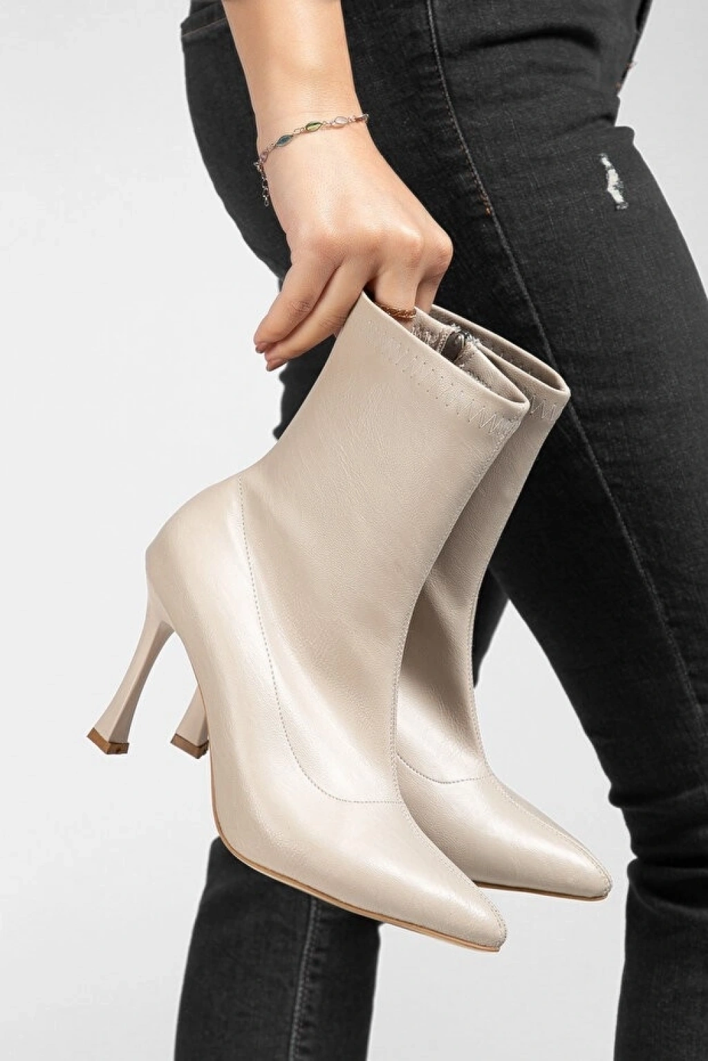 Jones Bej Cilt Bağcıklı Topuklu Bot