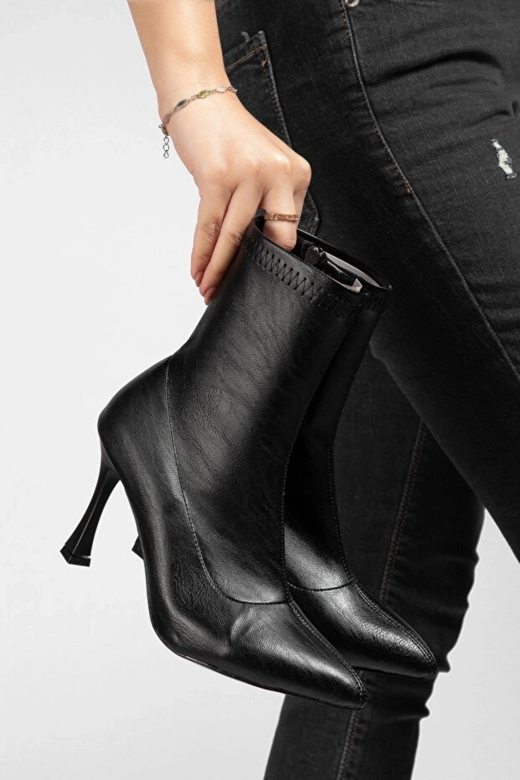 Kanda Siyah Cilt Topuklu Bot