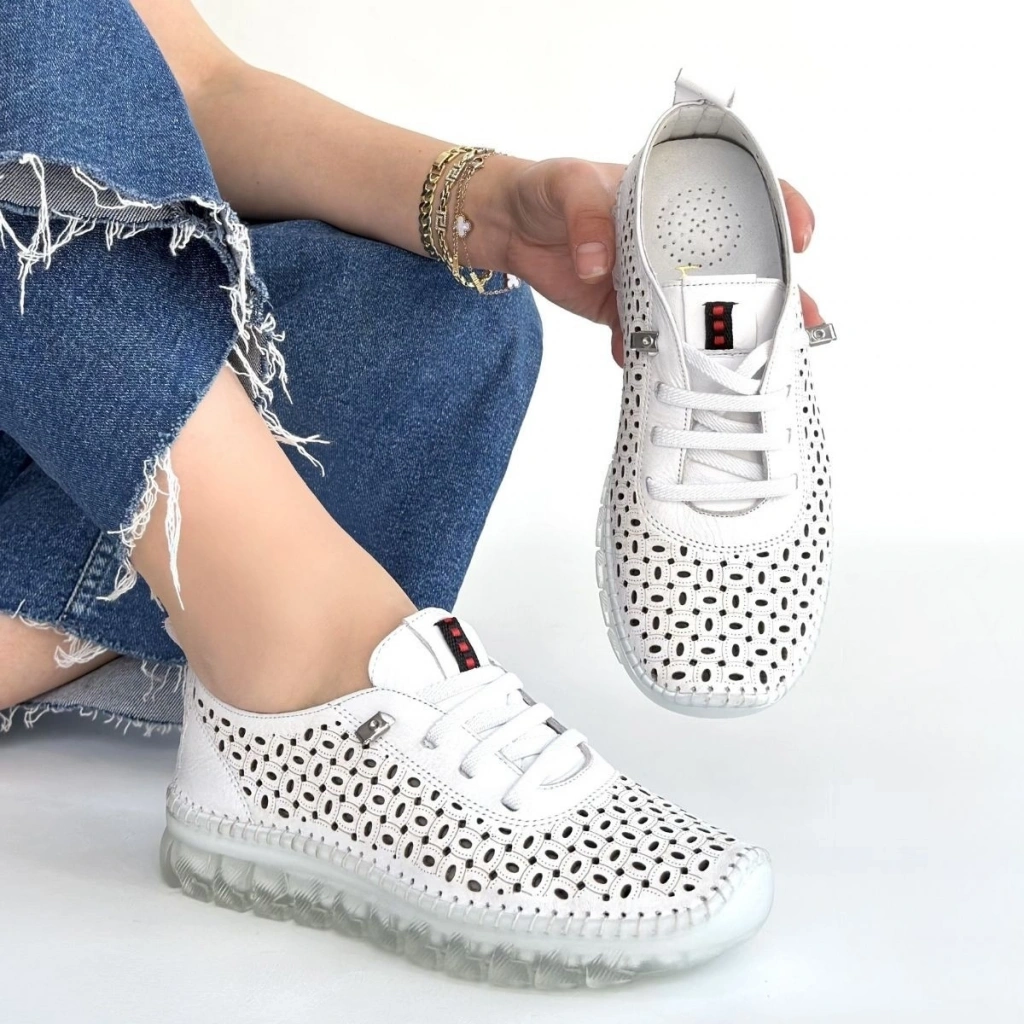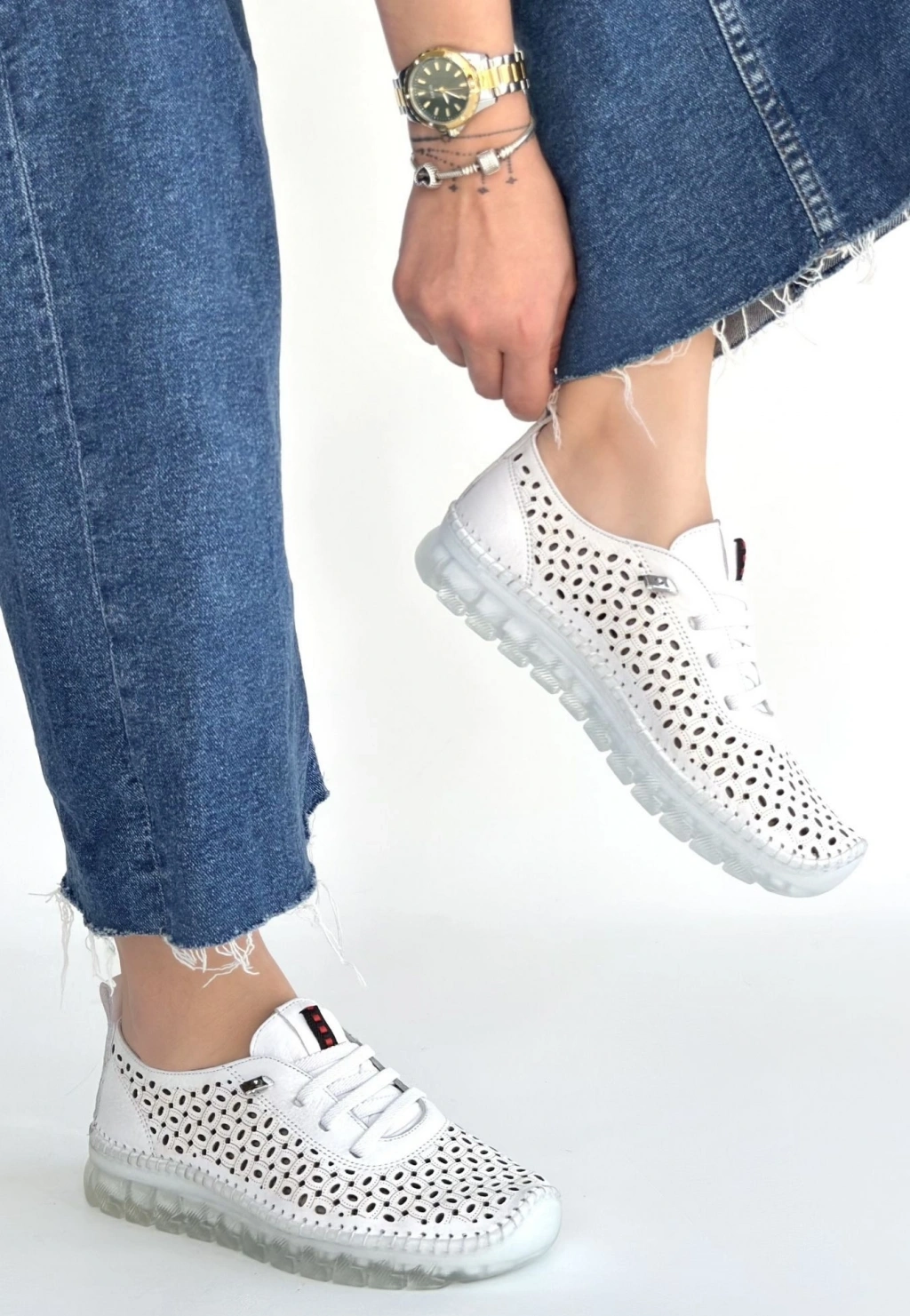 Otja Beyaz Deri Lazerli Bağcıklı Spor Ayakkabı