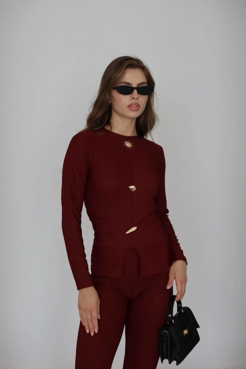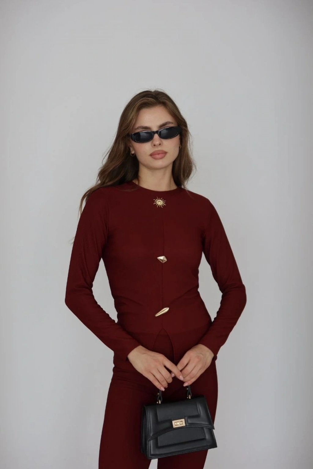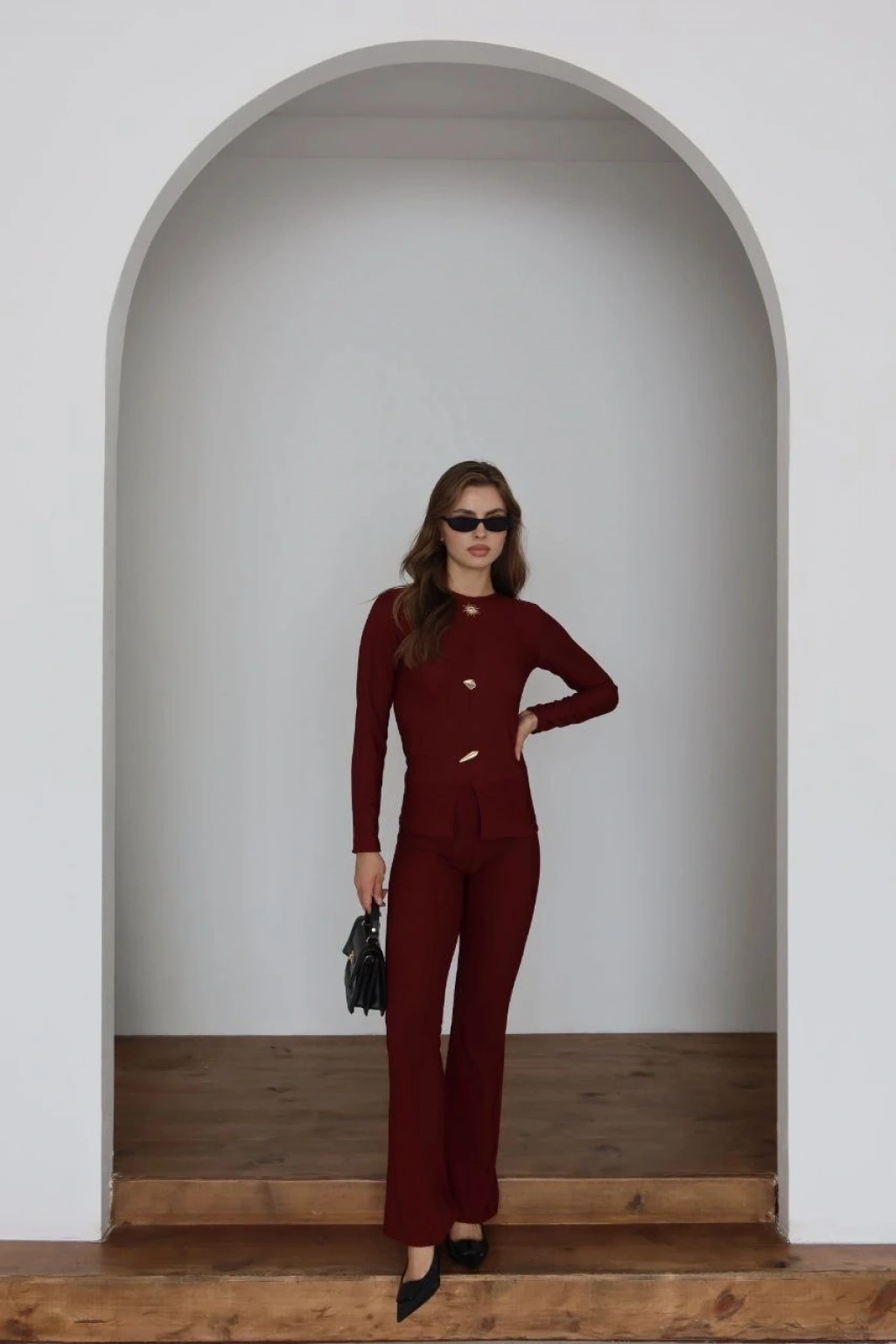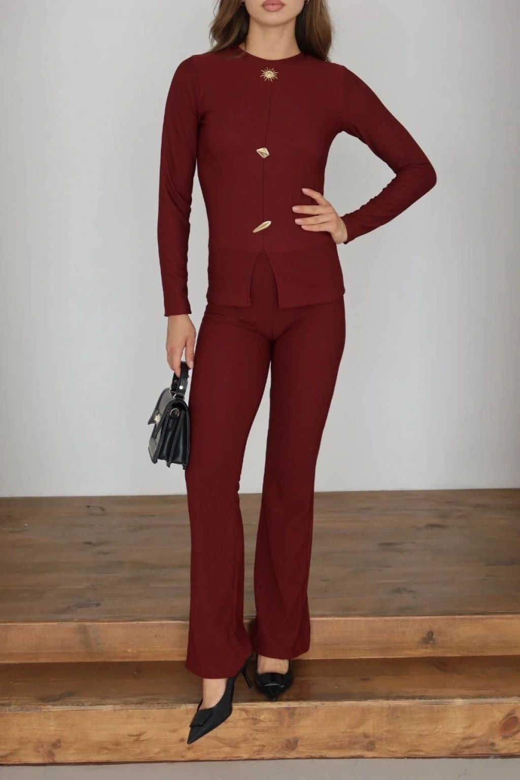 3 iplik içi Şardonlu yarım fermuarlı alt üst takım siyah
