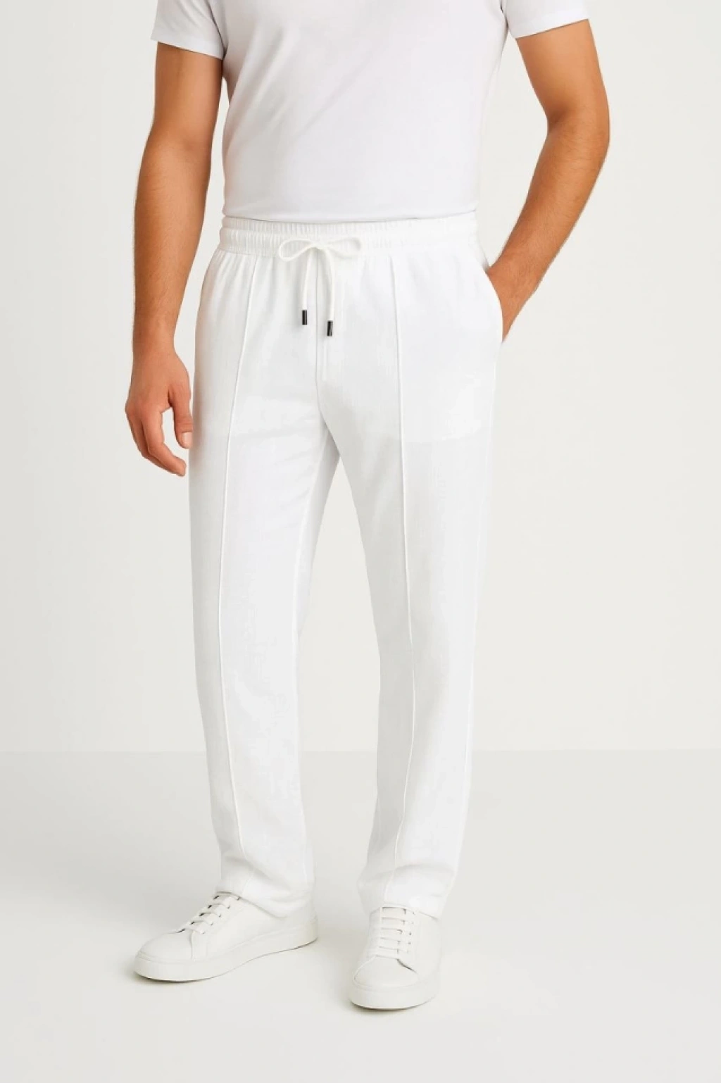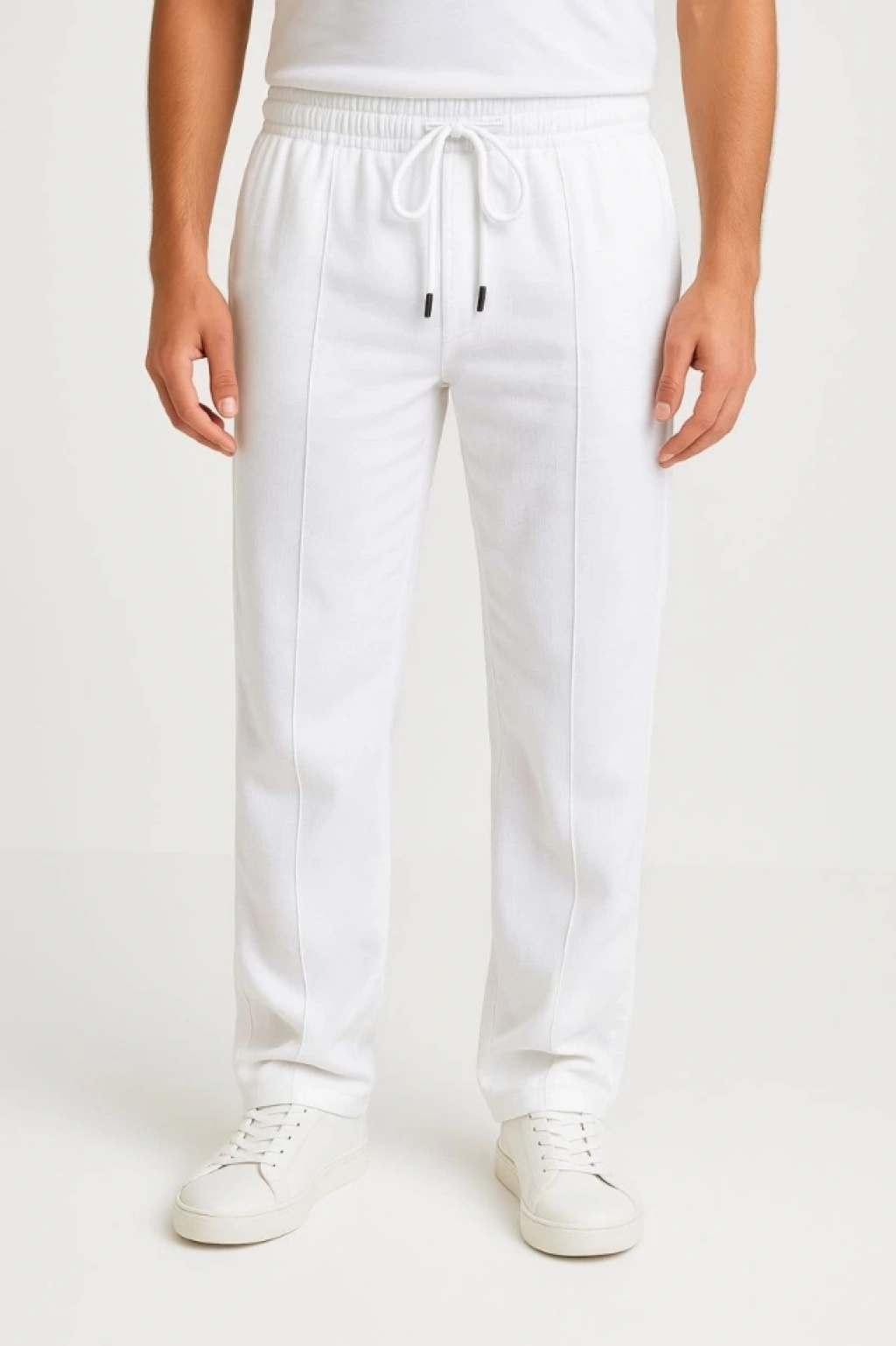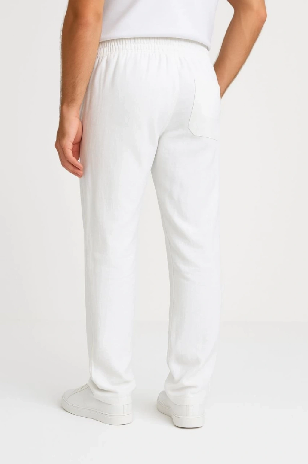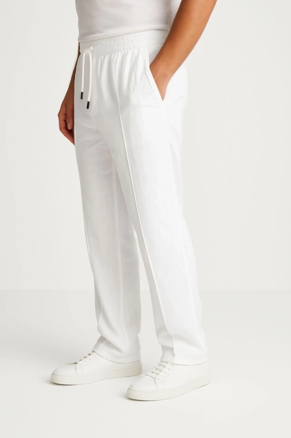 Erkek Keten Pantolon – Cepli, Beli Lastikli Ve Bağcıklı, Nefes Alan Rahat Kalıp, Yazlık Ve Baharlık Günlük Giyim, Şık - Konforlu Boru Paça Model - Beyaz