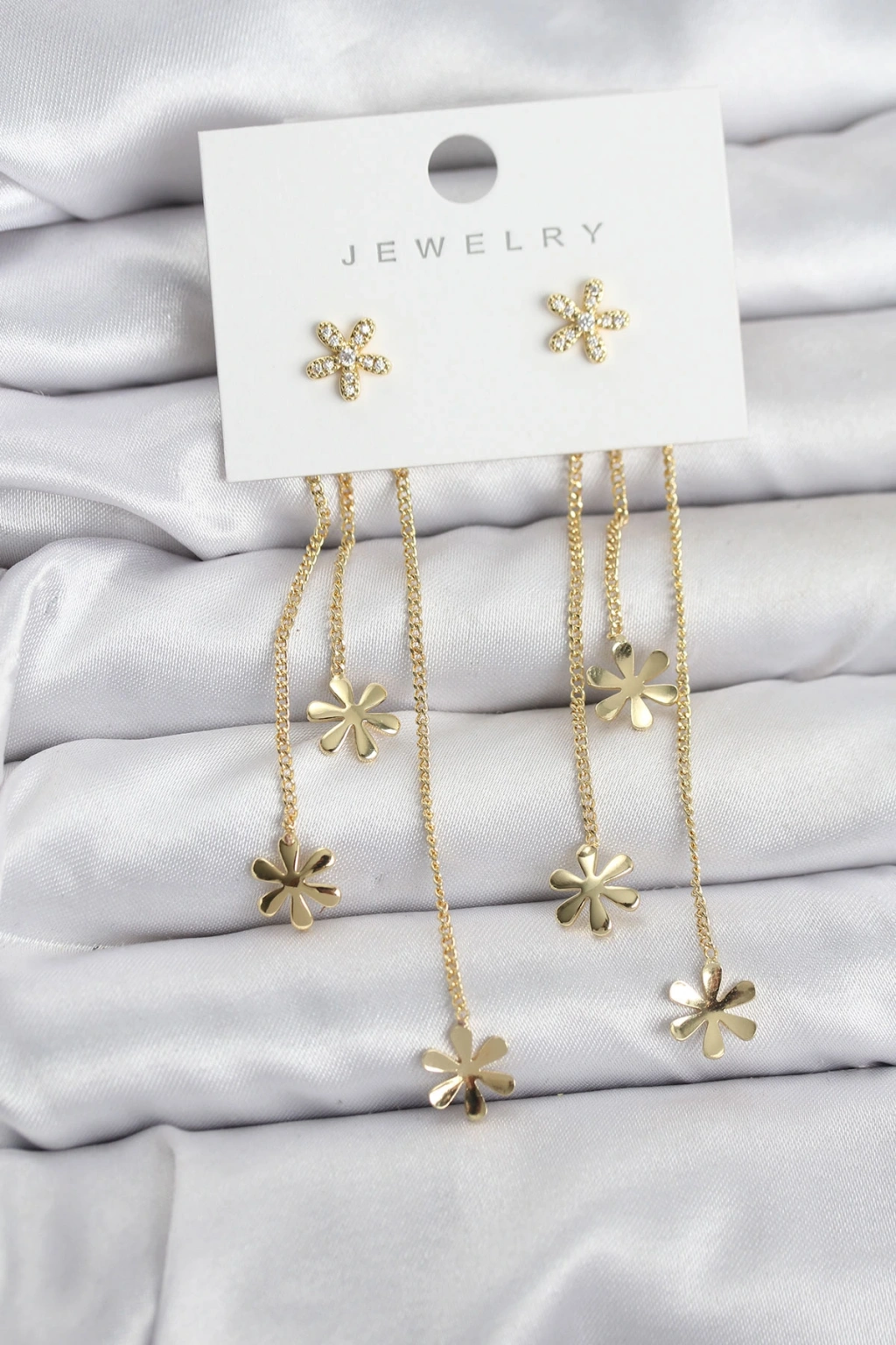 Papatya Model Gold Renk Pirinç Sallantılı Kadın Küpe