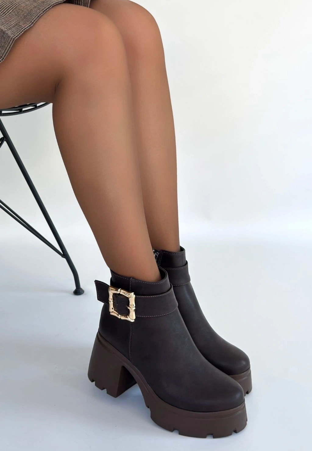 Orjen Kahverengi Cilt Streç Topuklu Bot