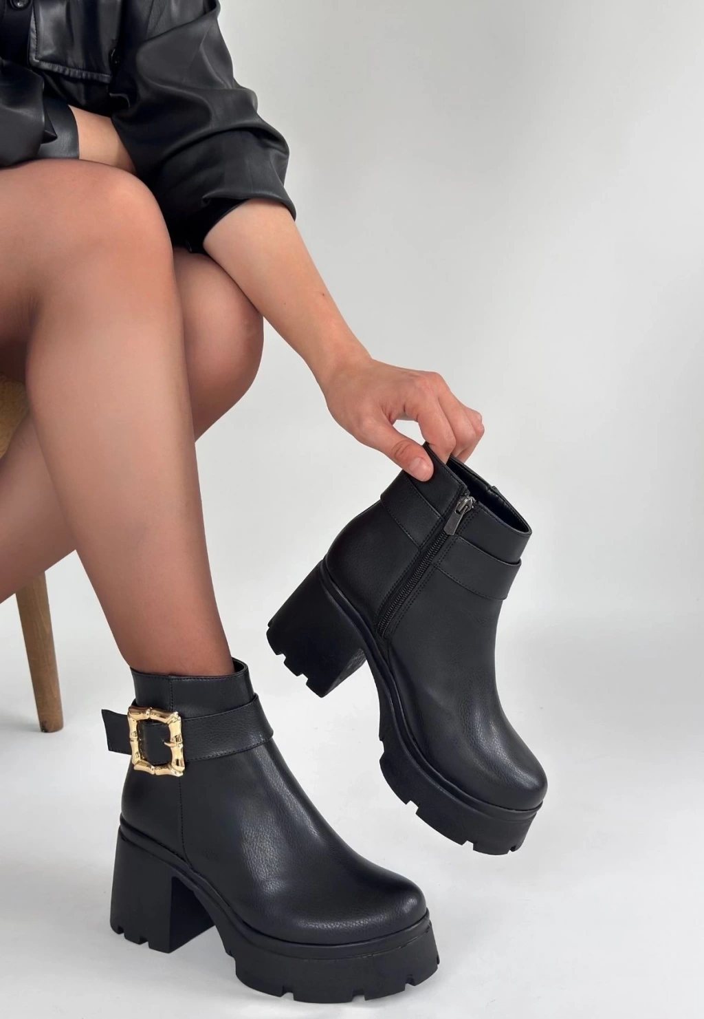 Meça Siyah Cilt Topuklu Bot