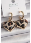 Pirinç Gold Renk 3D Kalp Leopar Model Kadın Küpe