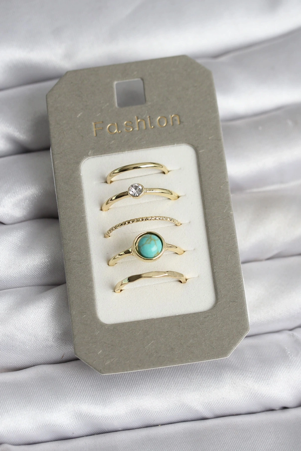 Pirinç Gold Renk 5'li Yüzük Seti