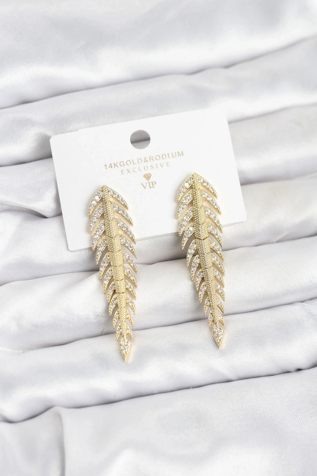 Pirinç Gold Renk Balık Sırtı Model Zirkon Taşlı Kadın Küpe