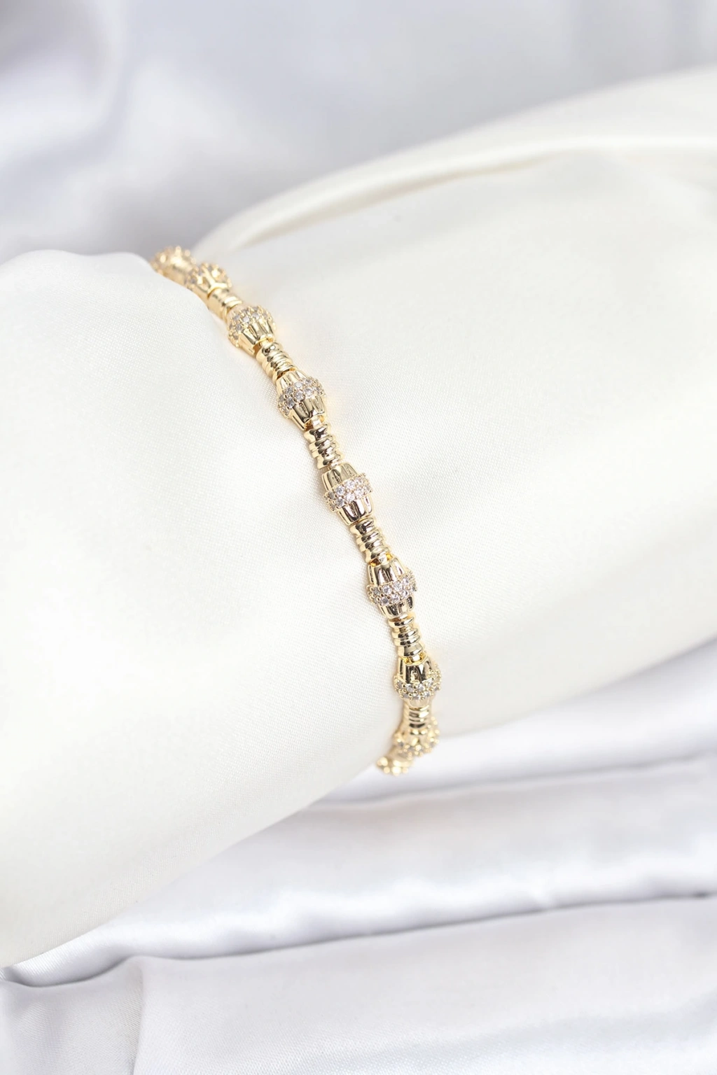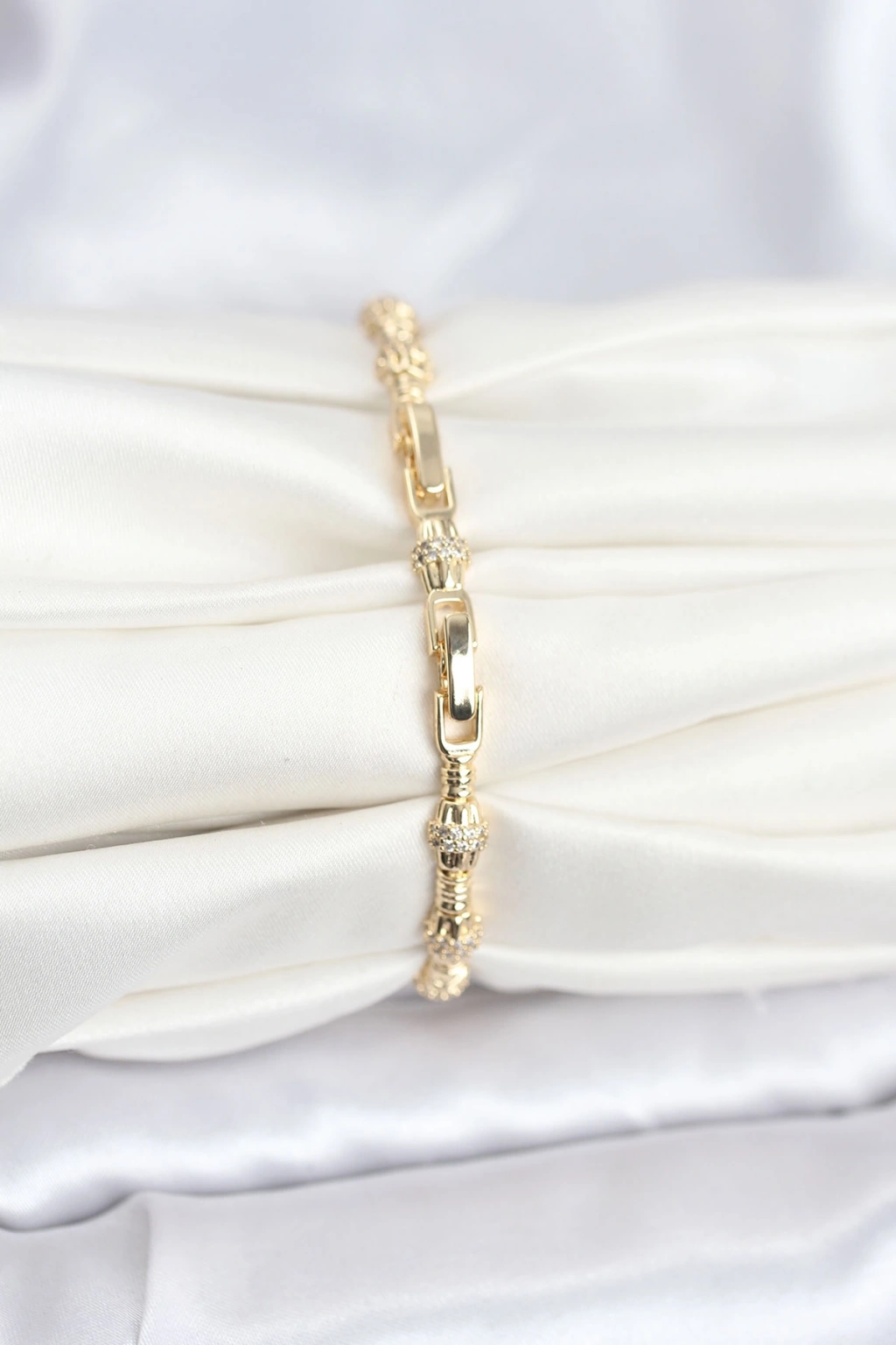 Pirinç Gold Renk VIP Seri Punta Model Zirkon Taşlı Kadın Bileklik