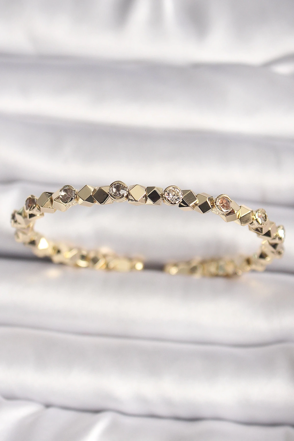 Pirinç Gold Renk Zirkon Taşlı Küp Dorika Model Kadın Bileklik