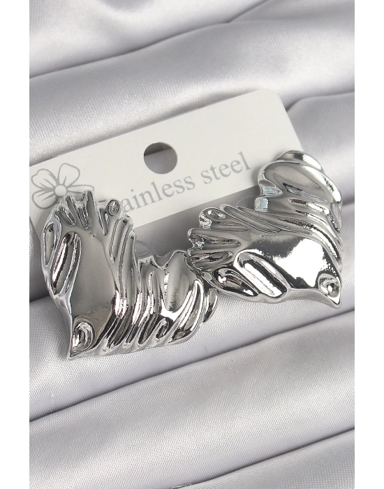 Pirinç Gümüş Renk İşlemeli Kalp Model Kadın Küpe