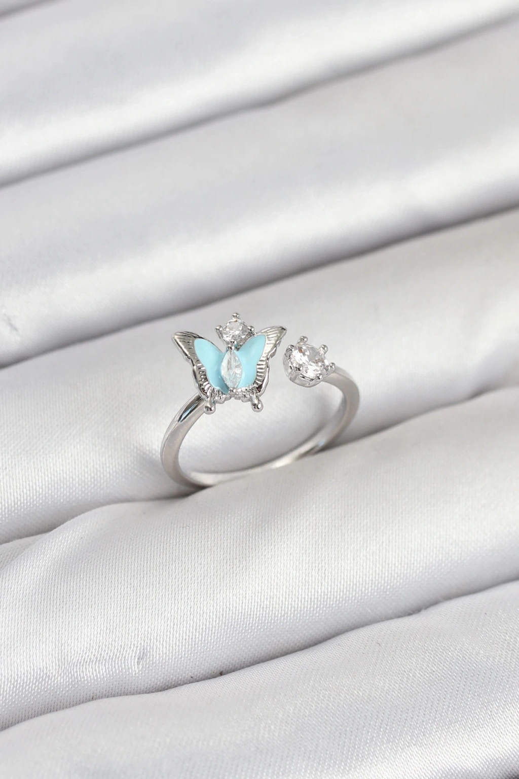 Pirinç Gümüş Renk Kelebek Model Kadın Yüzük