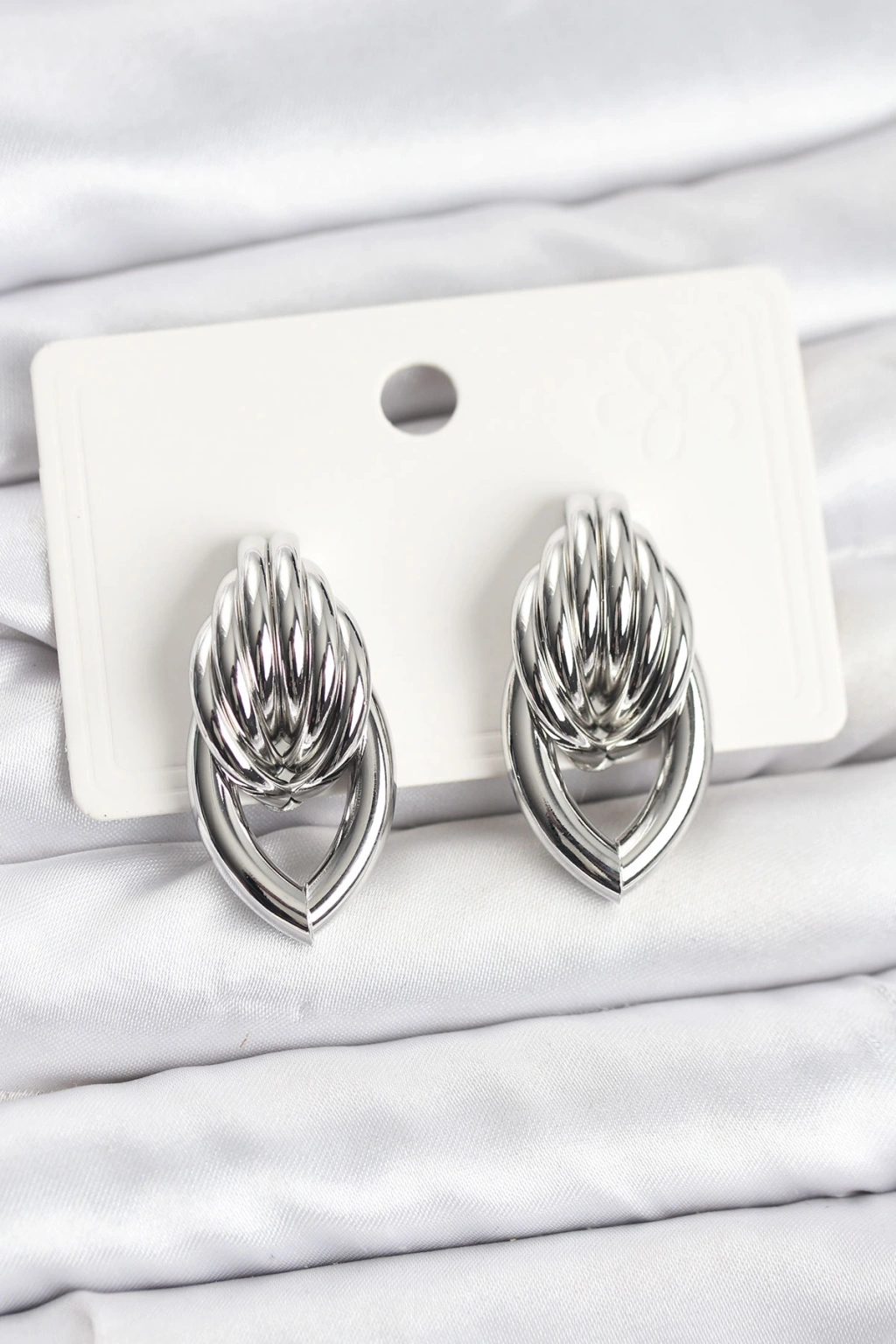 Pirinç Gümüş Renk Sarmal Damla Model Vintage Kadın Küpe