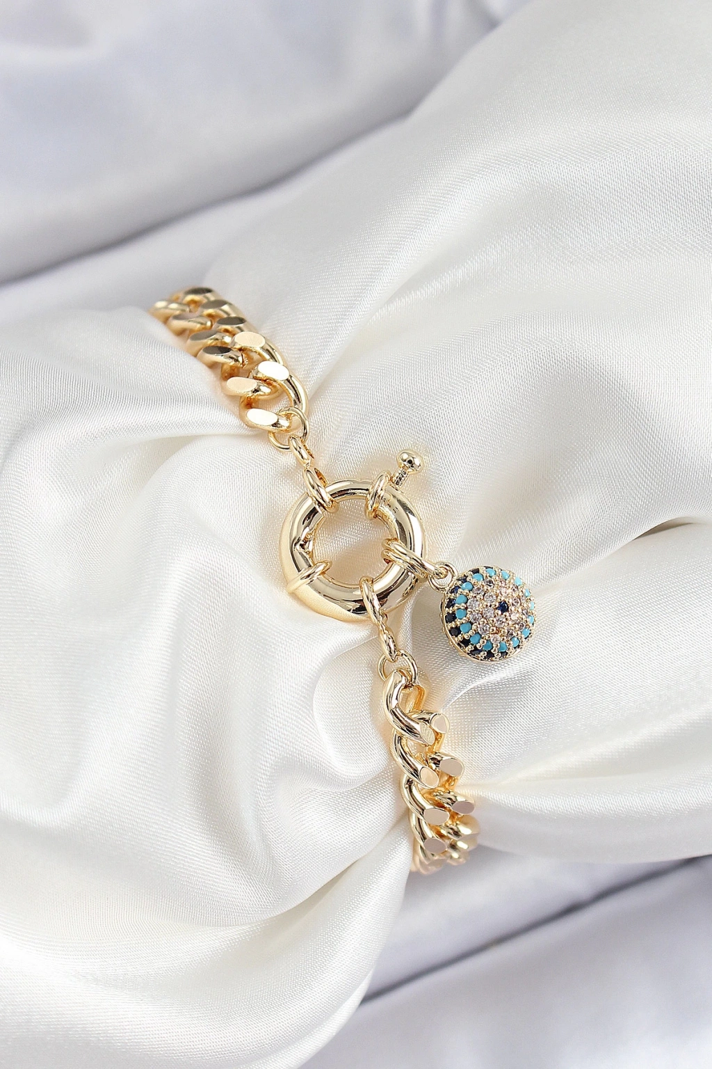 Pirinç Nazar Model Zirkon Taşlı Gold Renk VİP Seri Kadın Bileklik