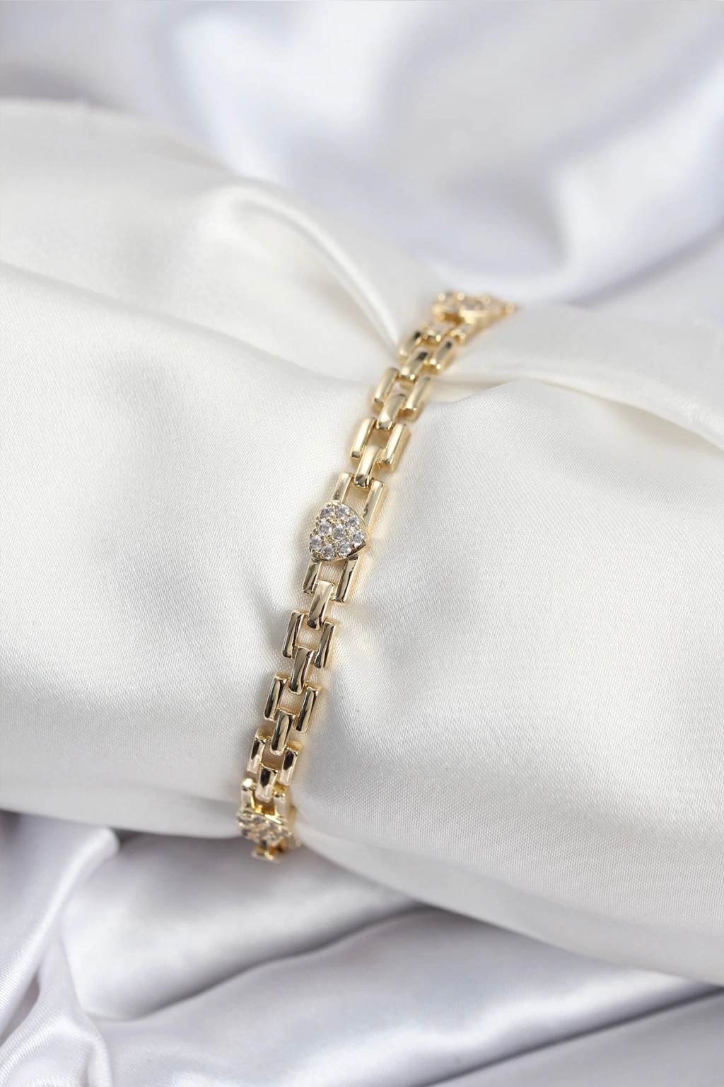 Pirinç VIP Seri Gold Renk Zincir Model Kalpli Zirkon Taşlı Kadın Bileklik
