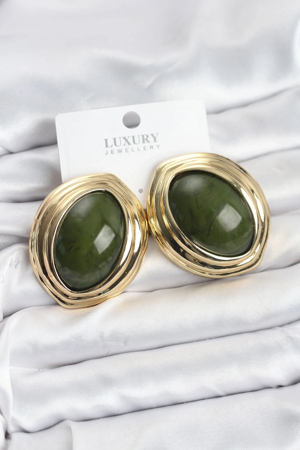 Pirinç Yeşil Badem Model Vintage Gold Kadın Küpe