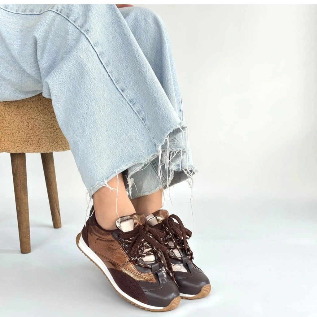 Rimay Kahverengi Cilt Boncuk İşlemeli Spor Ayakkabı