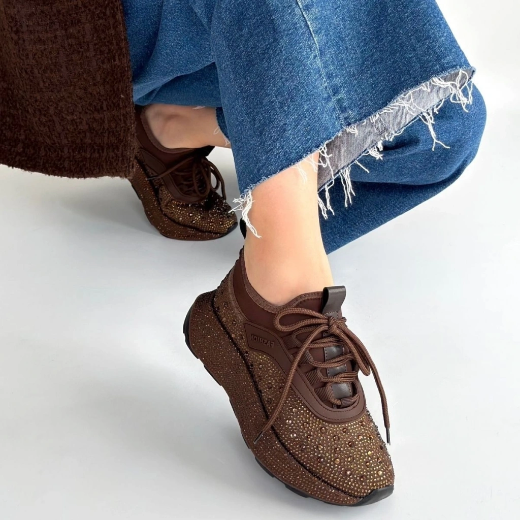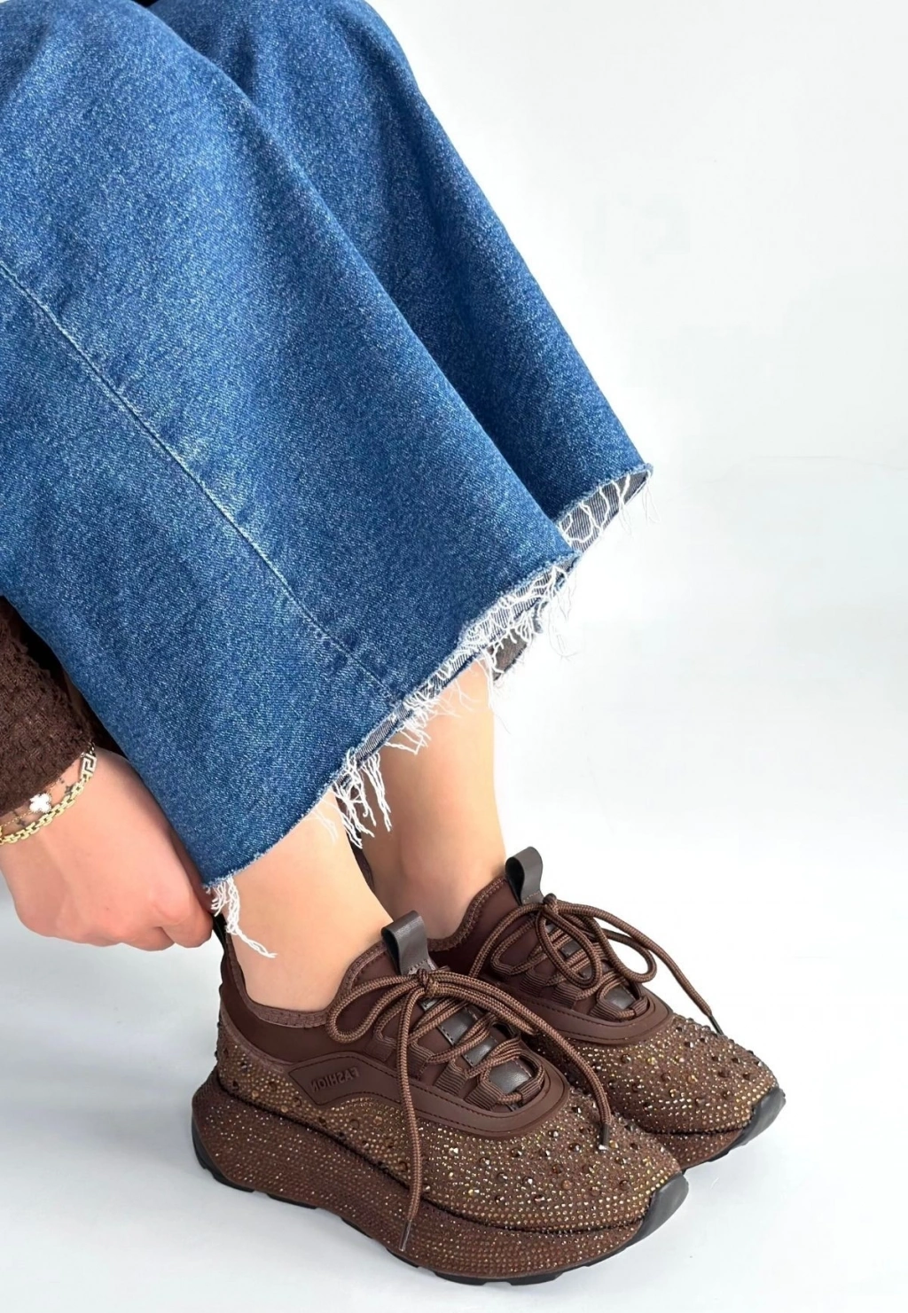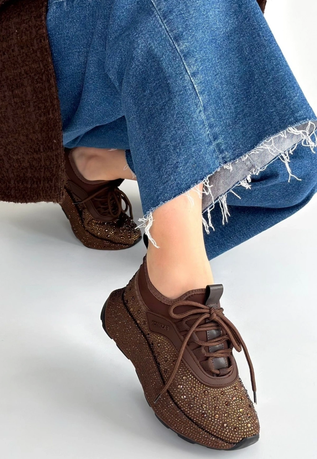 Rimay Kahverengi Cilt Boncuk İşlemeli Spor Ayakkabı