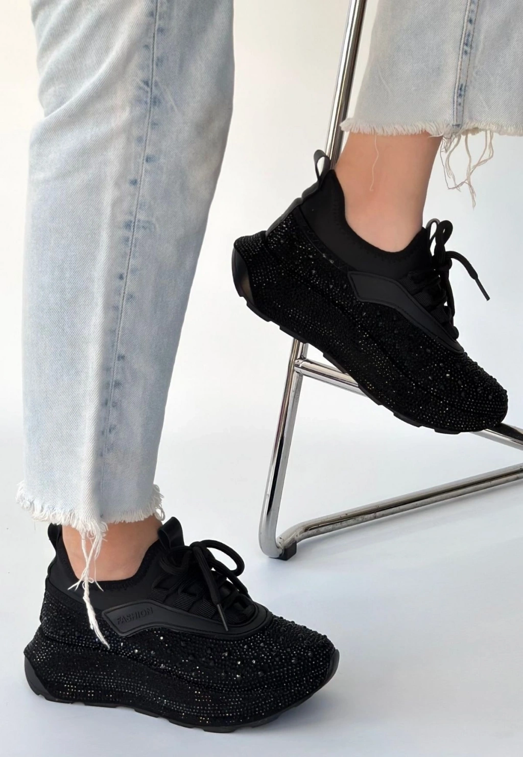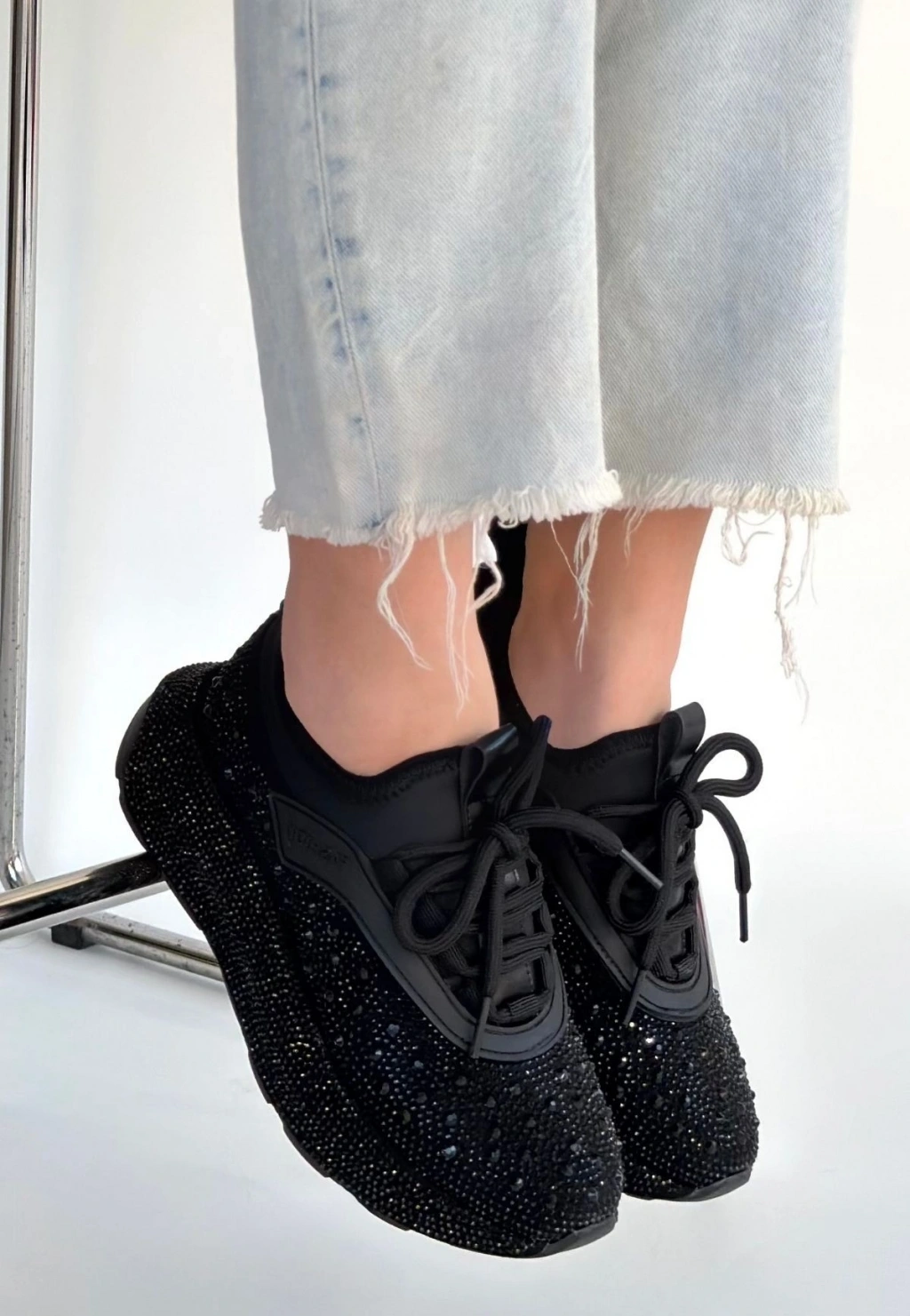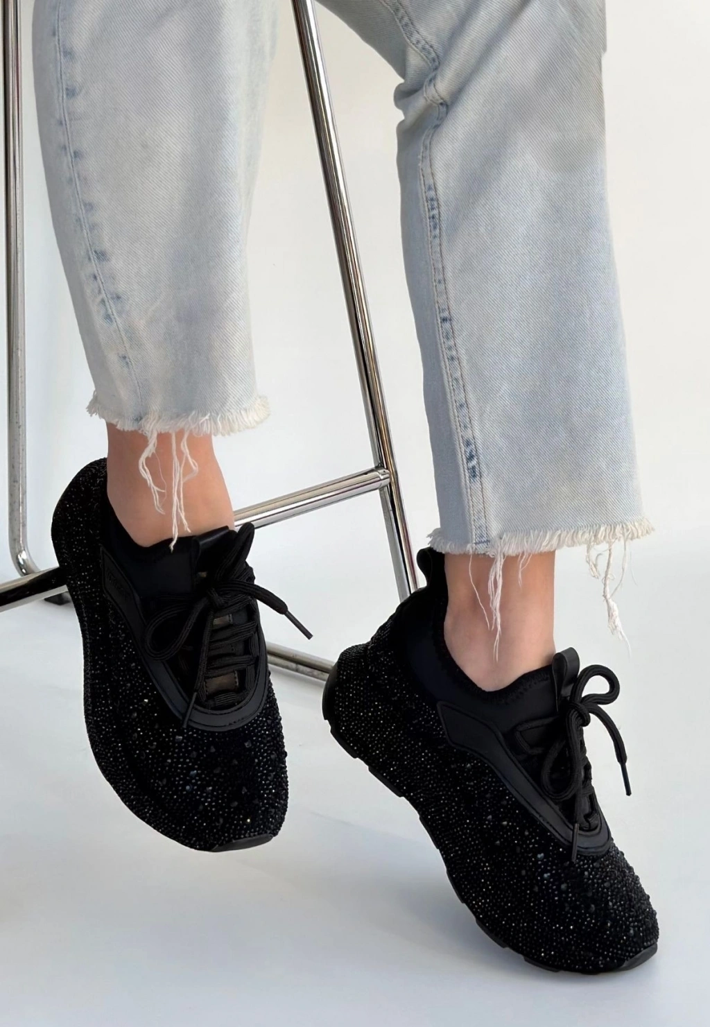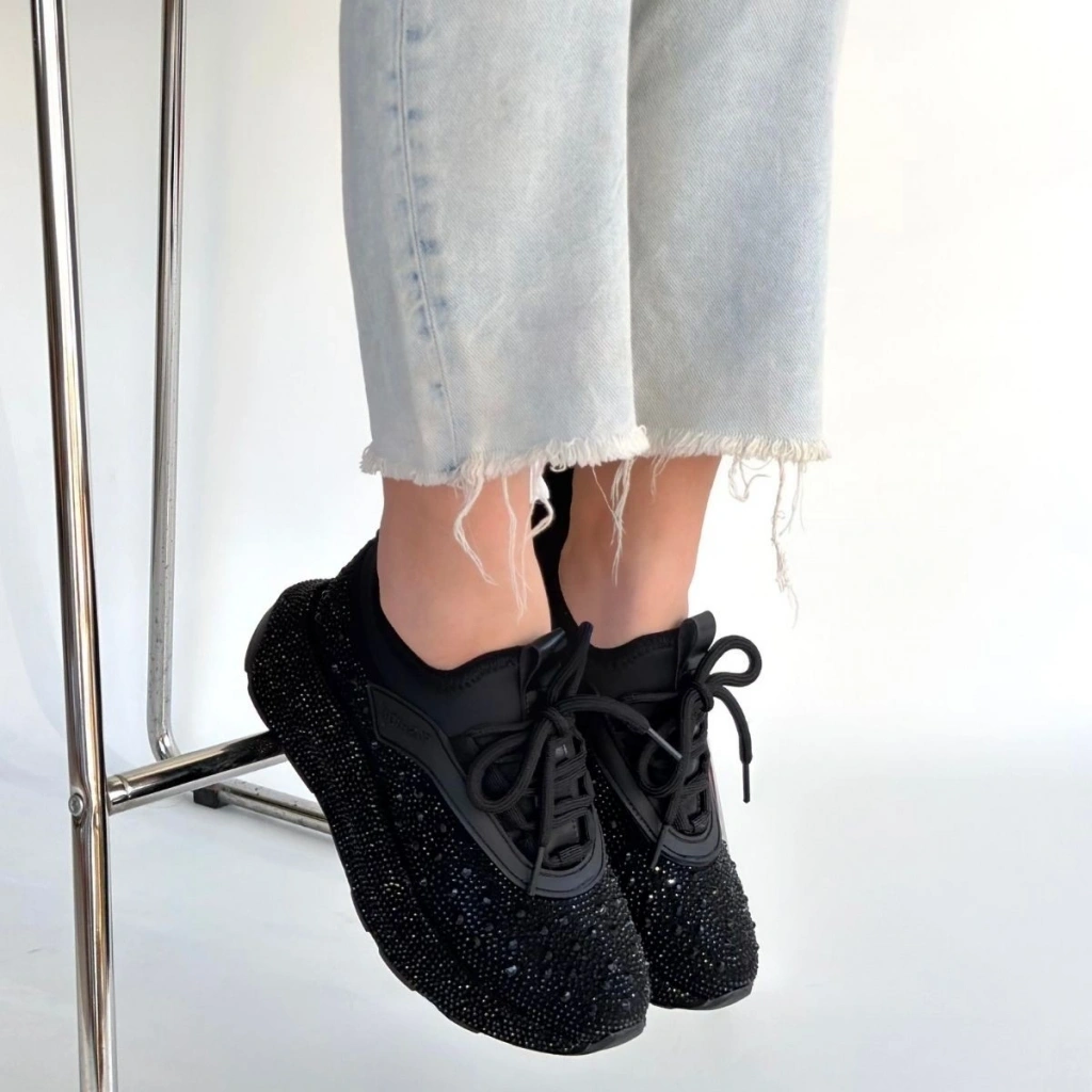 Rimay Siyah Cilt Boncuk İşlemeli Spor Ayakkabı
