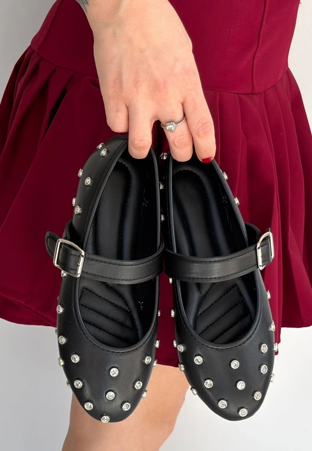 Ritta Siyah Cilt Kemerli Babet Ayakkabı