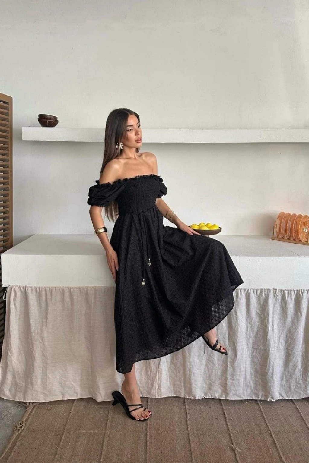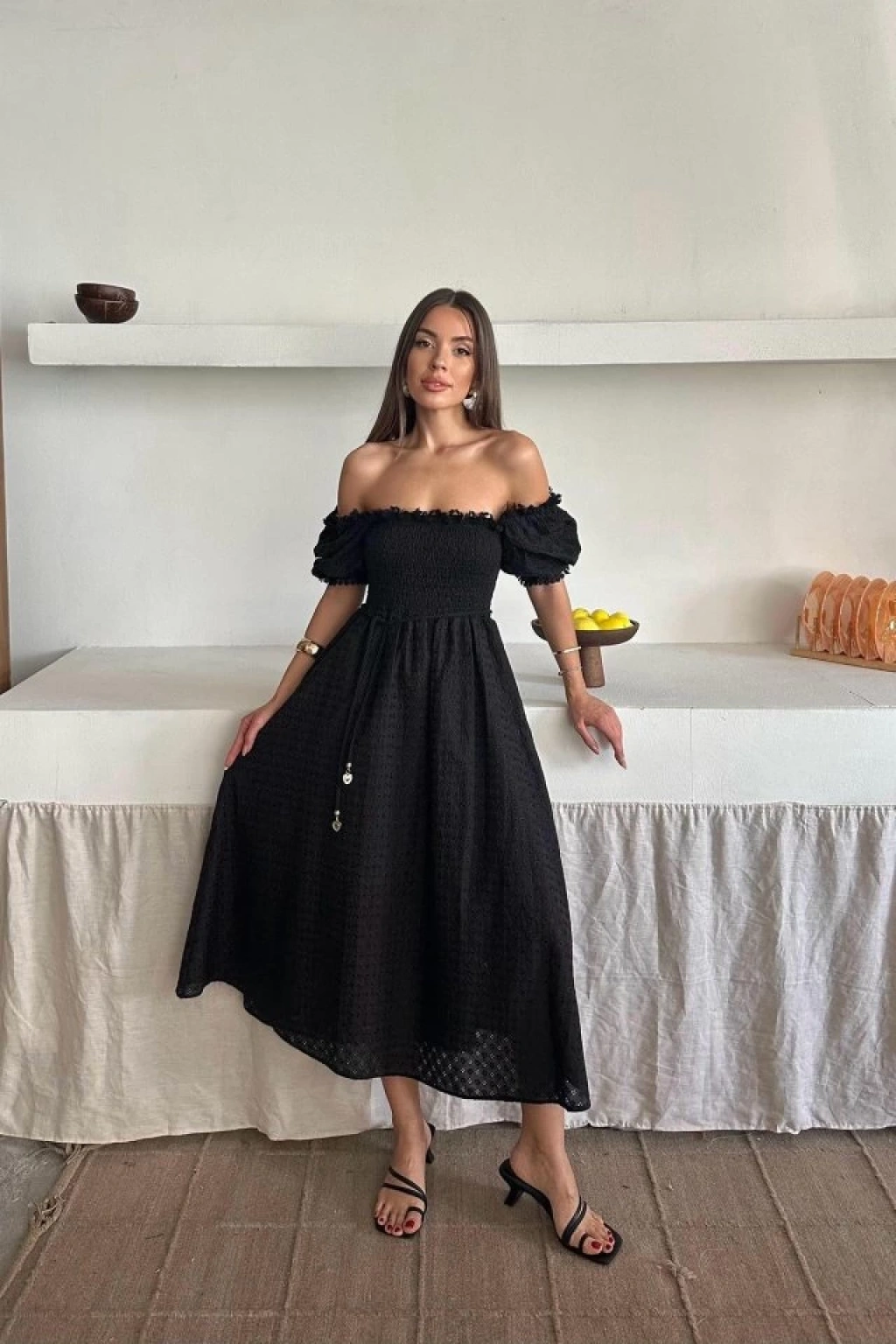 Siyah Gipeli Brode Elbise