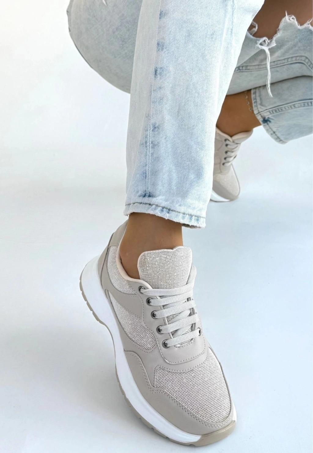 Finna Bej Cilt Bağcıklı Spor Ayakkabı