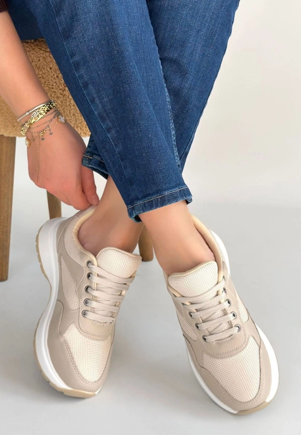 Jawen Bej Nubuk Gold Detaylı Spor Ayakkabı