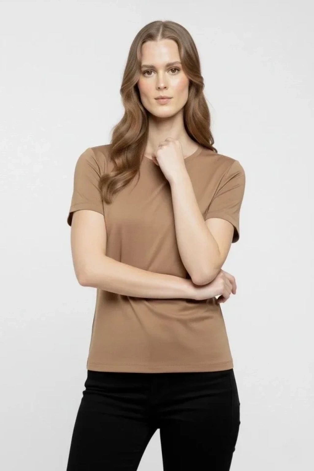 T-Shirt Bisiklet Yaka Slim Fit Likralı Tişört Günlük Basic Body - Kahverengi