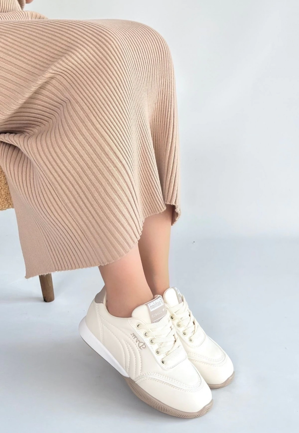Emwa Bej Cilt Bağcıklı Spor Ayakkabı