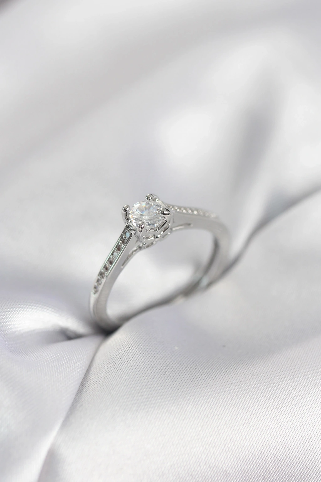 Tek Taş Gümüş Renk Zirkon Taşlı Model Kadın Yüzük