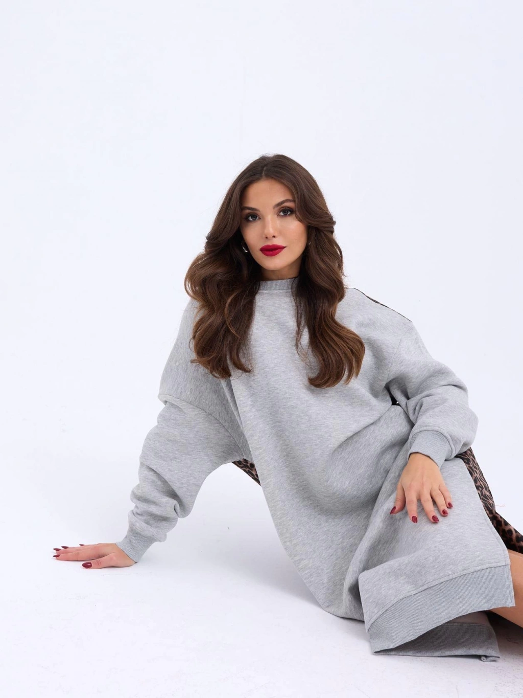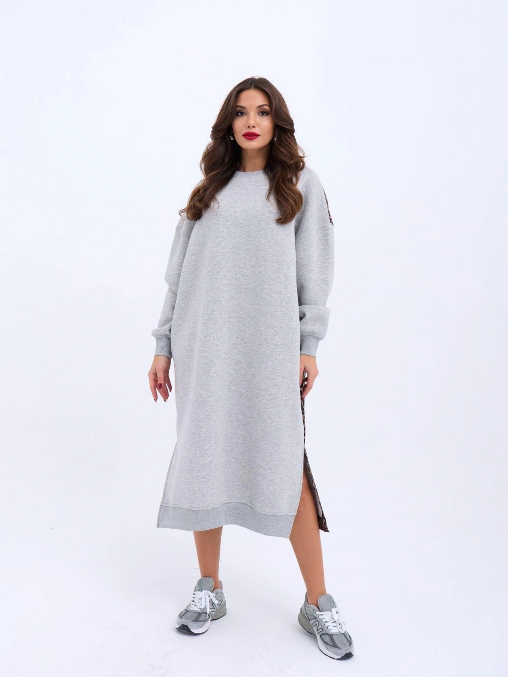 Kadın Arkası Leoparlı Yırtmaçlı Elbise