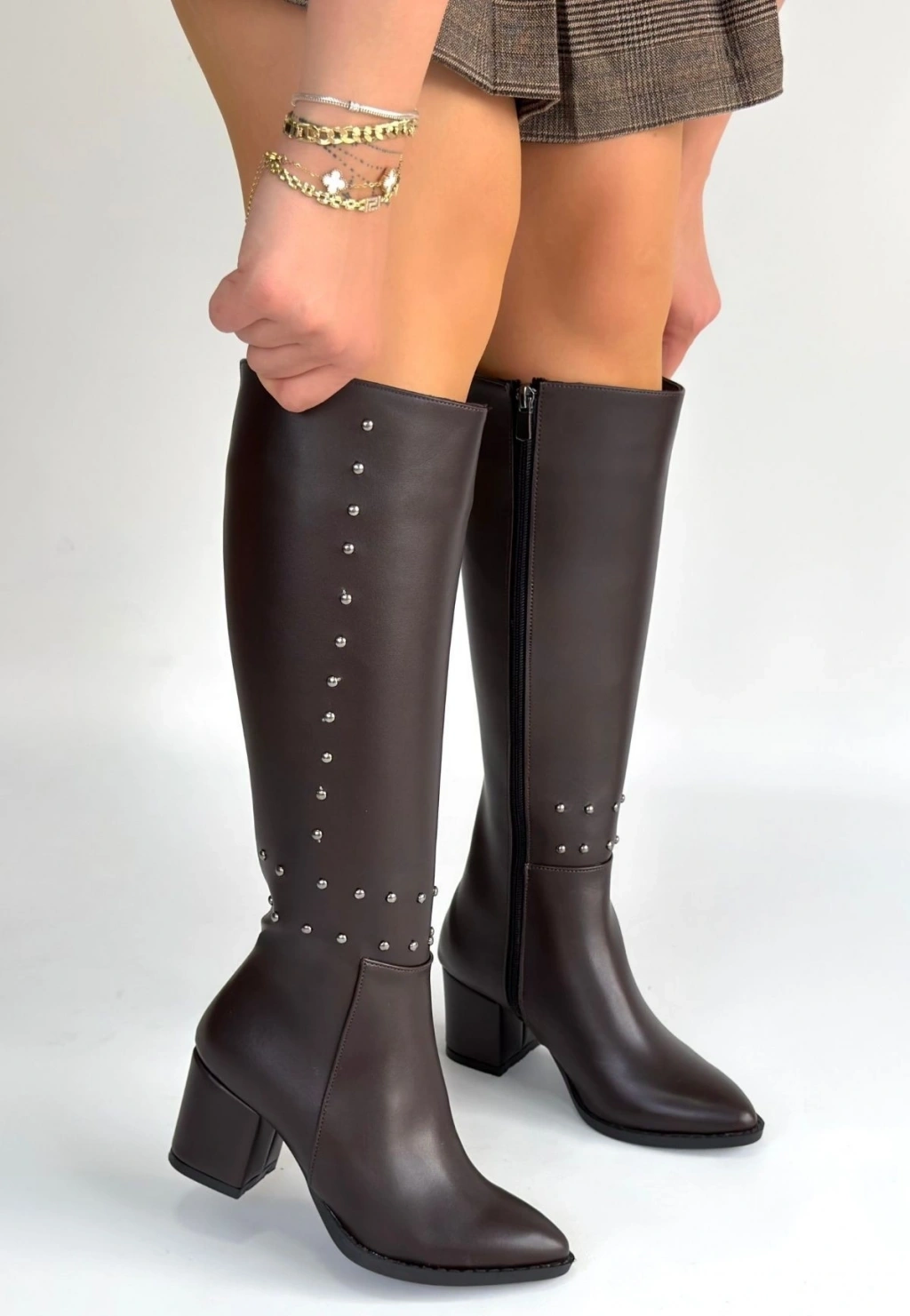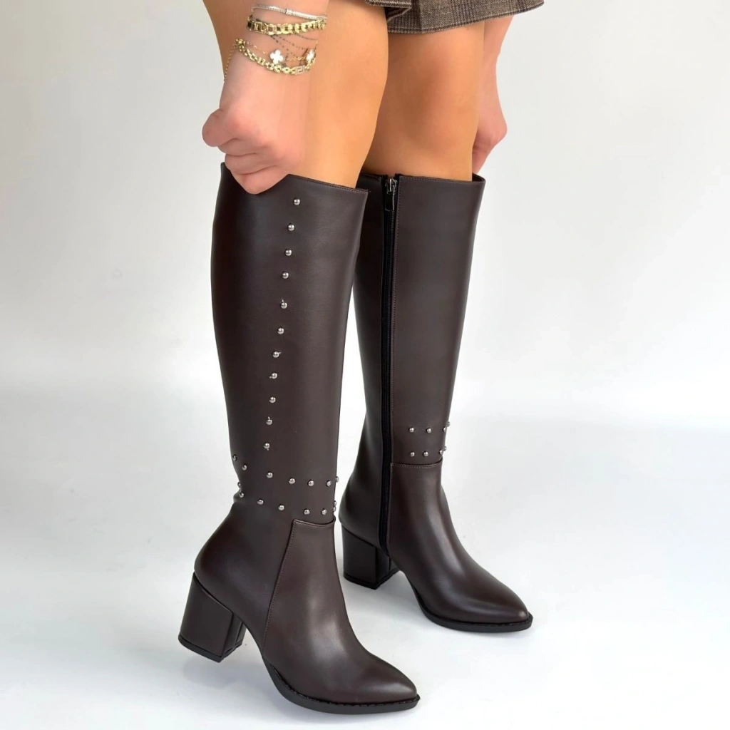 Mooni Kahverengi Cilt Topuklu Çizme