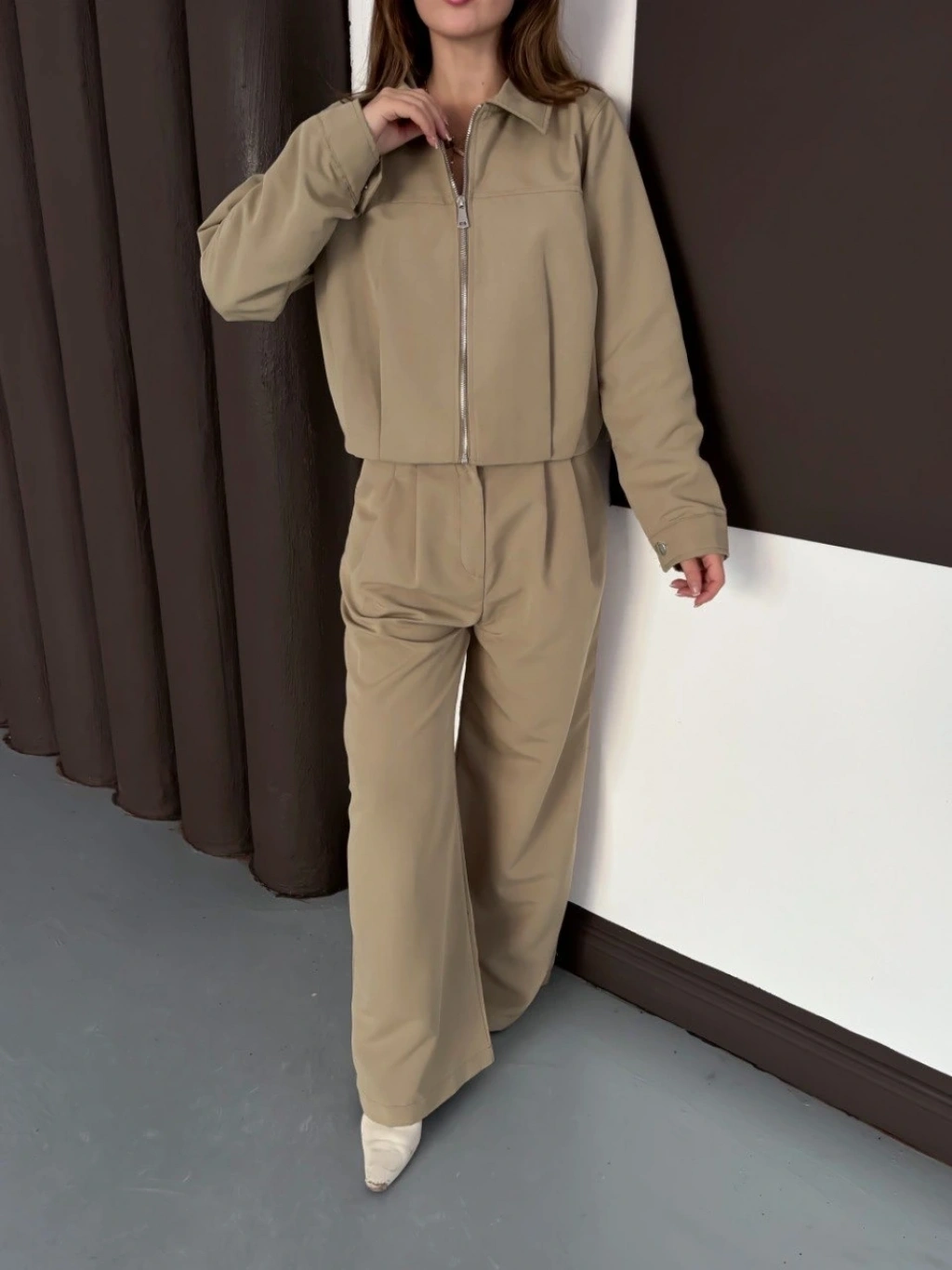 Gömlek yaka kaplama düğmeli takım kahve st265866