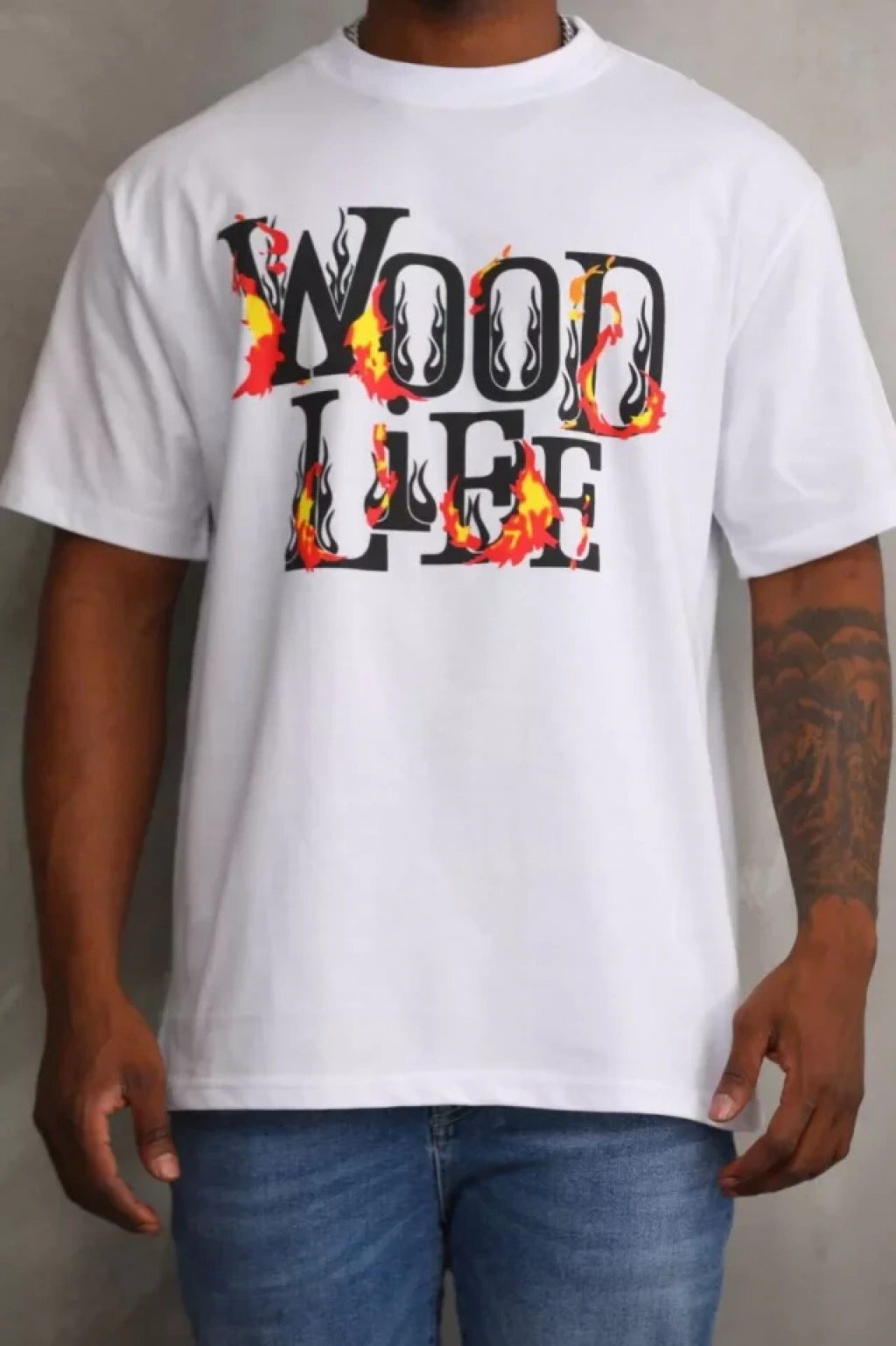 Wafıl Kumaş Tişört Regular Kalıp Bisiklet Yaka Baskılı Günlük Basic T-Shirt - Beyaz