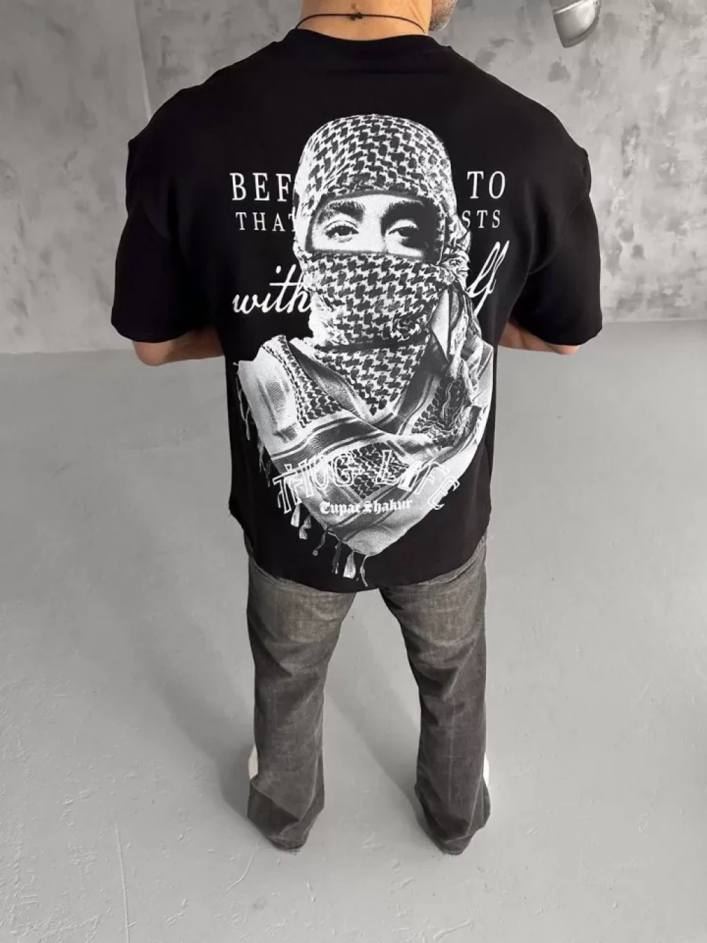 Unisex Baskılı Oversize T-Shirt - Siyah