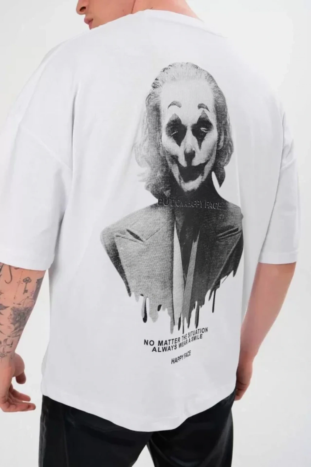 Unisex Bisiklet Yaka Baskılı Oversize T-Shirt - Beyaz