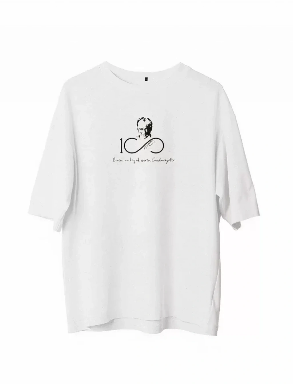 Unisex Bisiklet Yaka Baskılı Oversize T-Shirt - Beyaz
