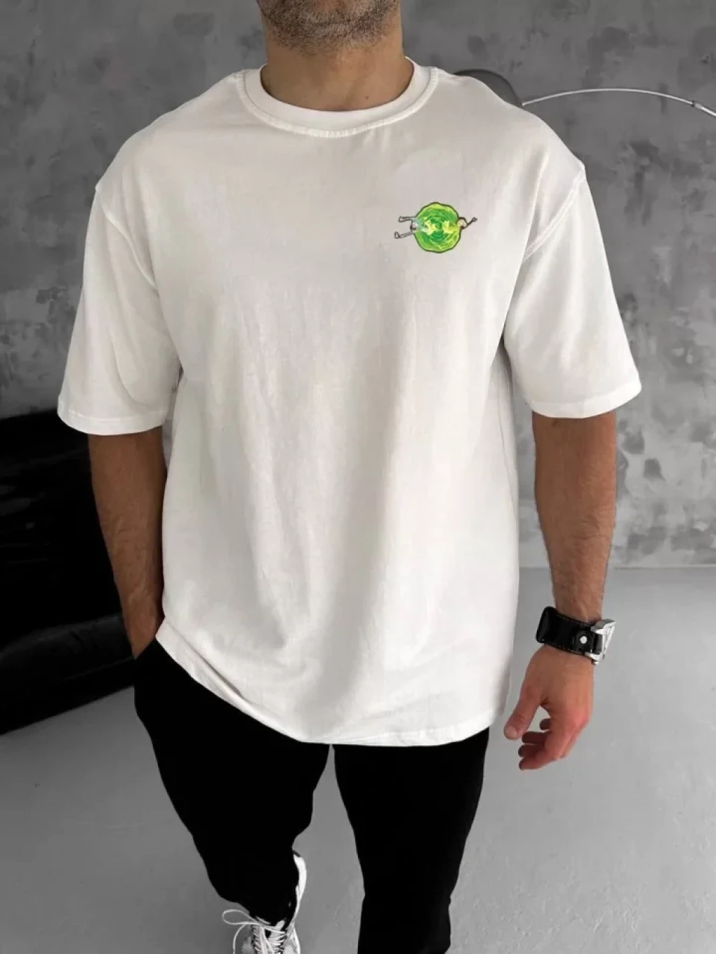 Unisex Bisiklet Yaka Baskılı Oversize T-Shirt - Beyaz