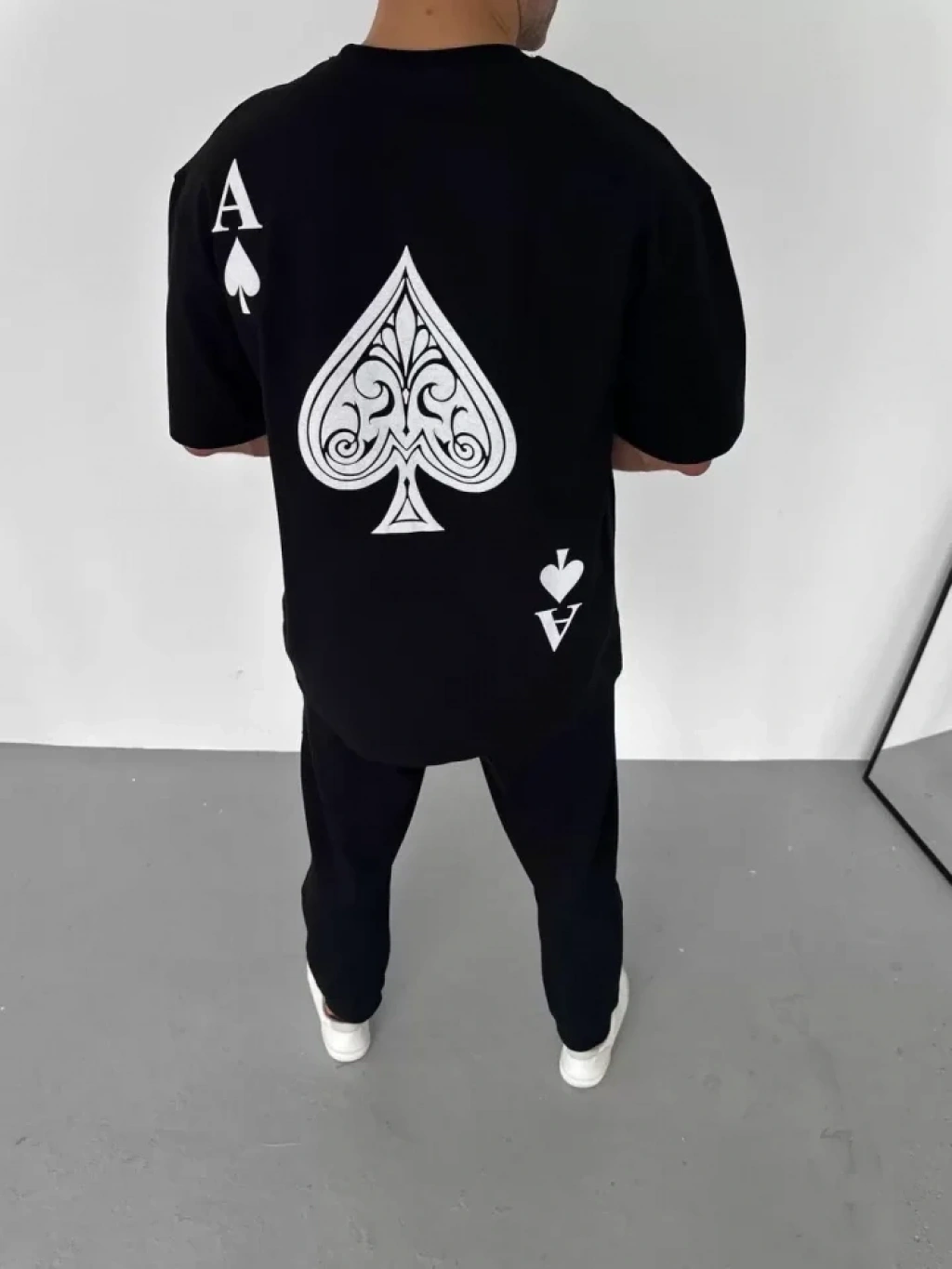 Unisex Bisiklet Yaka Baskılı Oversize T-Shirt - Siyah