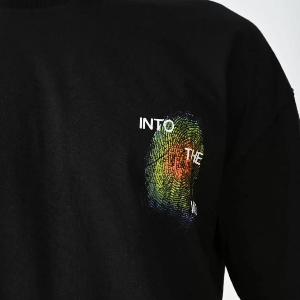 Unisex Bisiklet Yaka Baskılı Oversize T-Shirt - Siyah