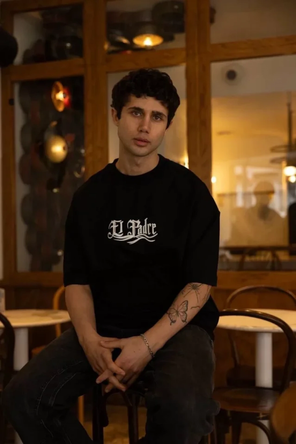Unisex Bisiklet Yaka Baskılı Oversize T-Shirt - Siyah