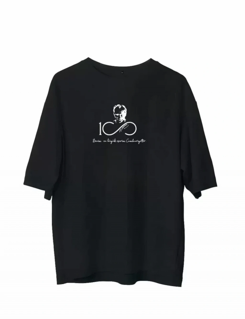 Unisex Bisiklet Yaka Baskılı Oversize T-Shirt - Siyah