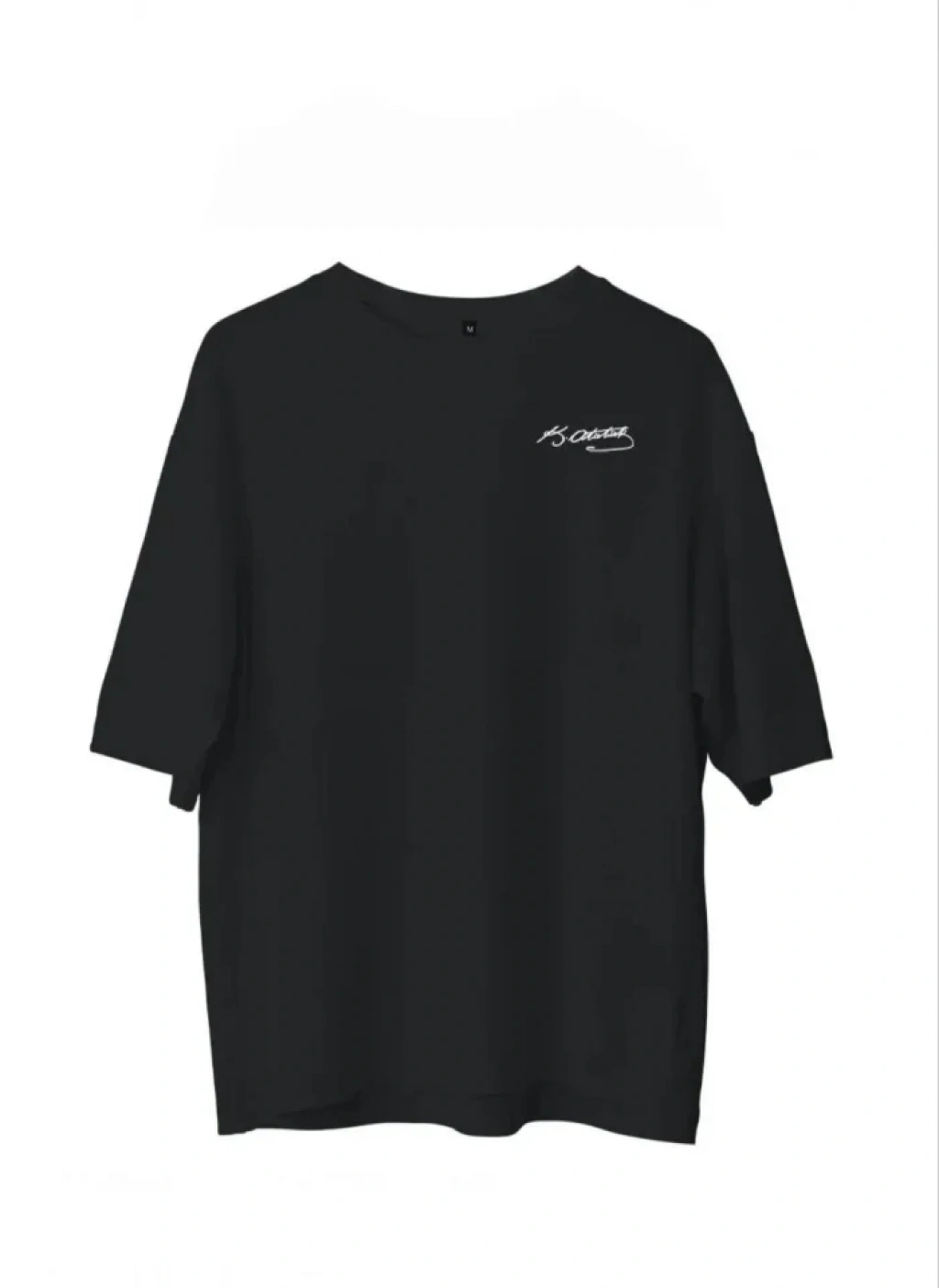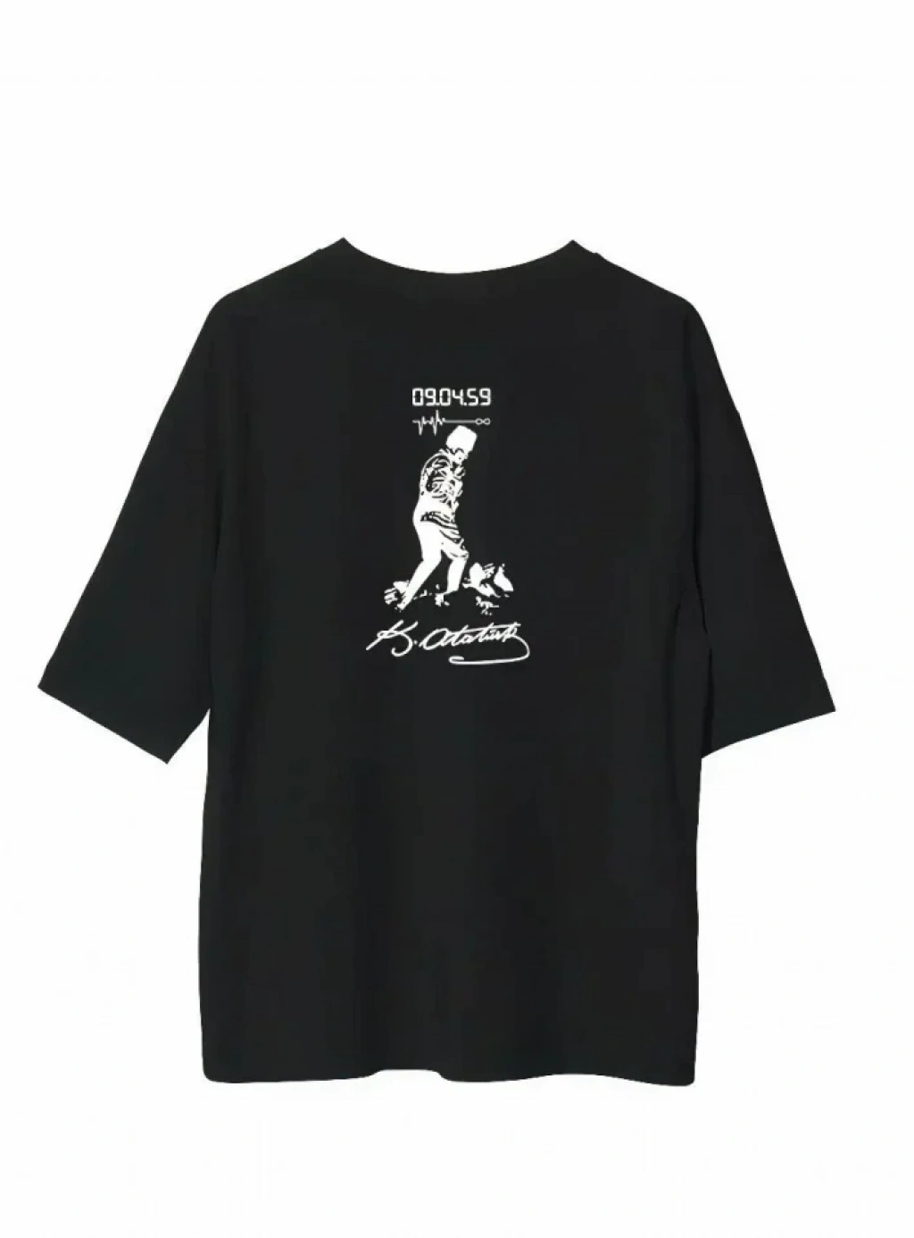 Unisex Bisiklet Yaka Baskılı Oversize T-Shirt - Siyah