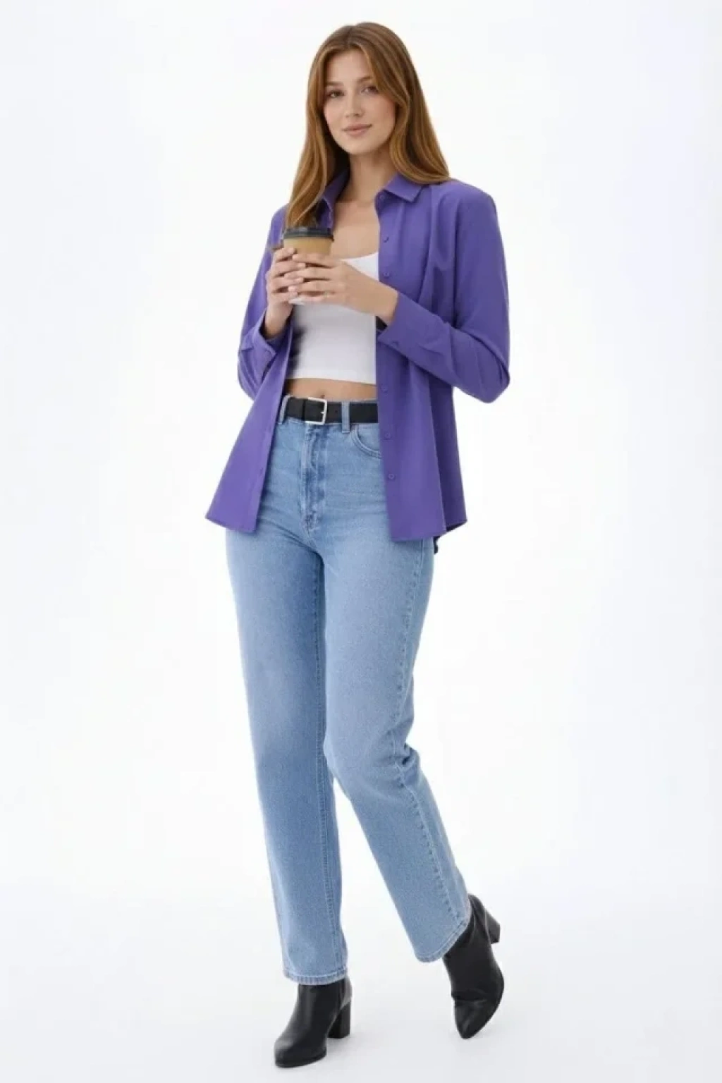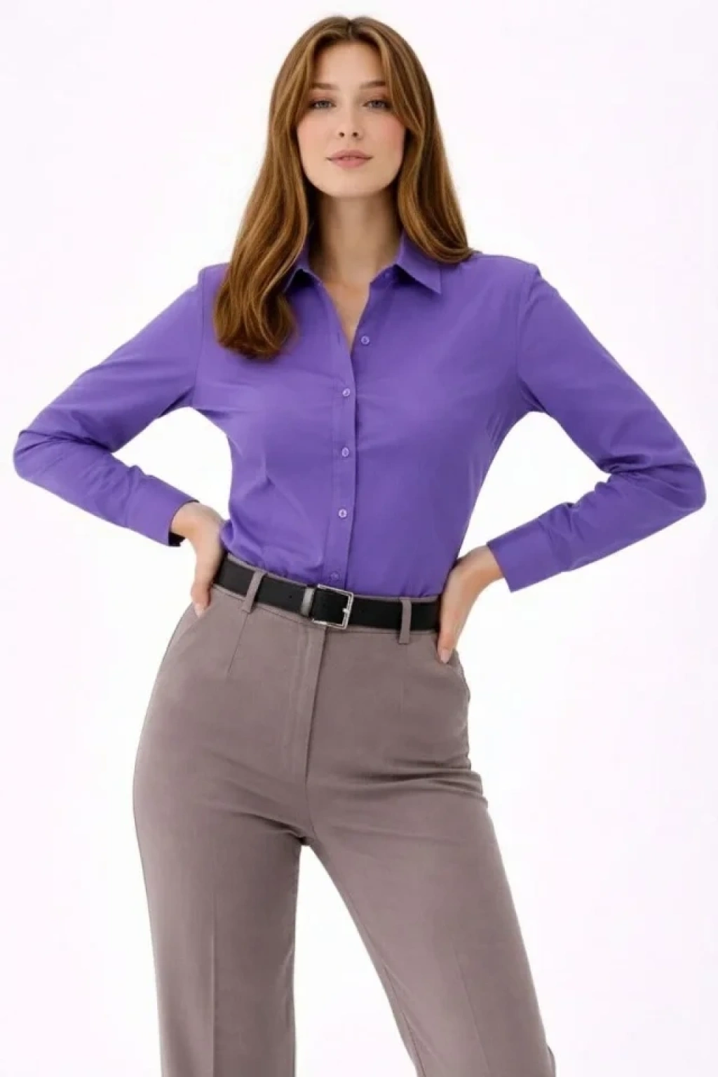 Uzun Kollu Gömlek Düğmeli Klasik Yaka Günlük Ve Ofis Şıklığına Uygun - Mor